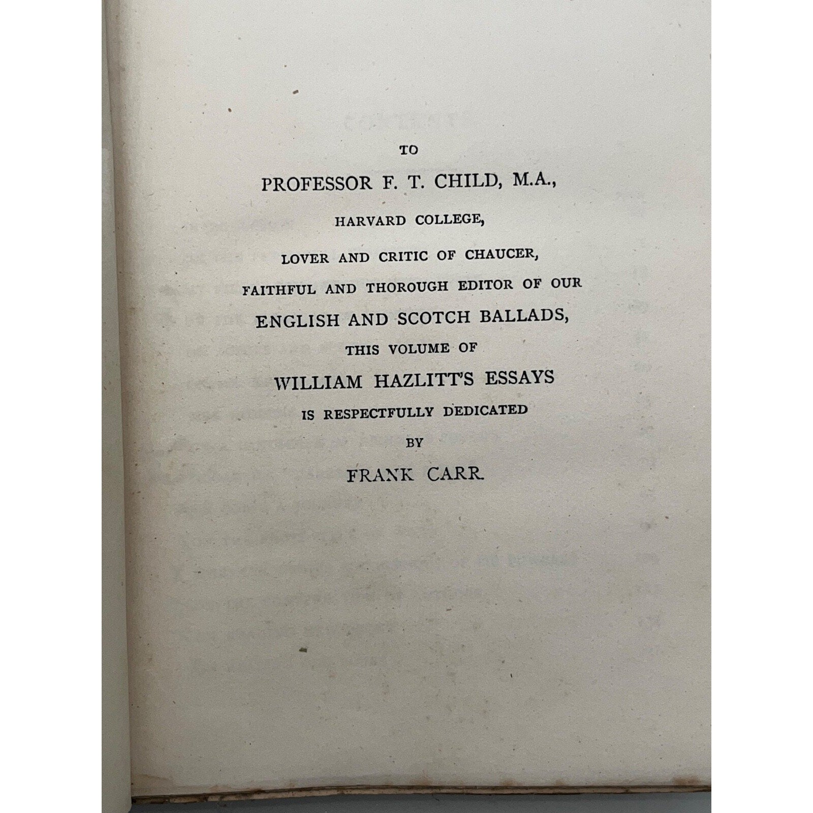 Essays William Hazlitt by Frank Carr HC From Mt. Holyoke 1913 With Notes