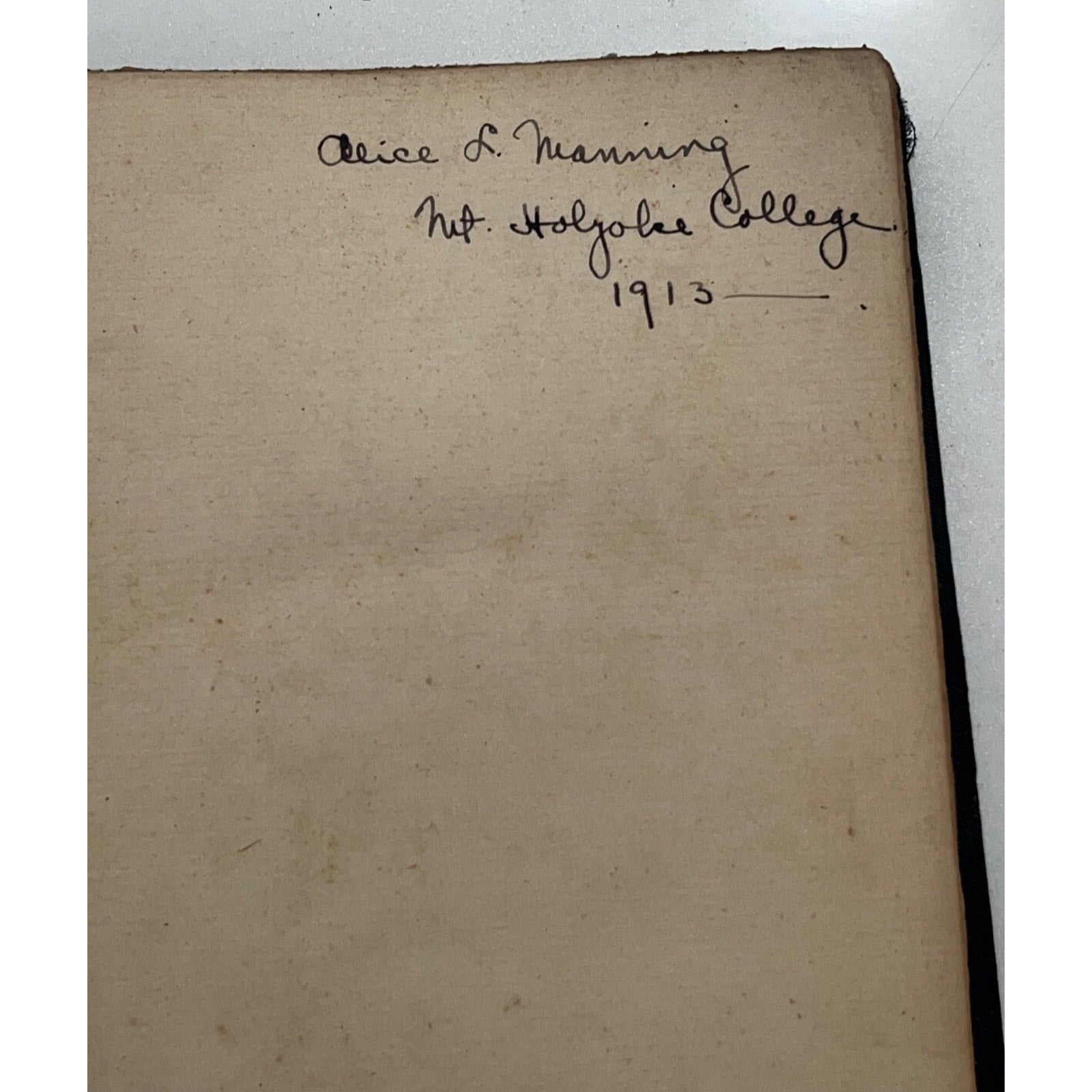 This particular hardback edition possesses a captivating connection to Mount Holyoke College, possibly from 1913. The phrase "From Mt. Holyoke 1913 With Notes" strongly suggests this copy belonged to a student there at that time, potentially Alice Manning. While the exact details of this association are not definitively confirmed by external records, this intriguing detail adds a layer of historical significance to the book.