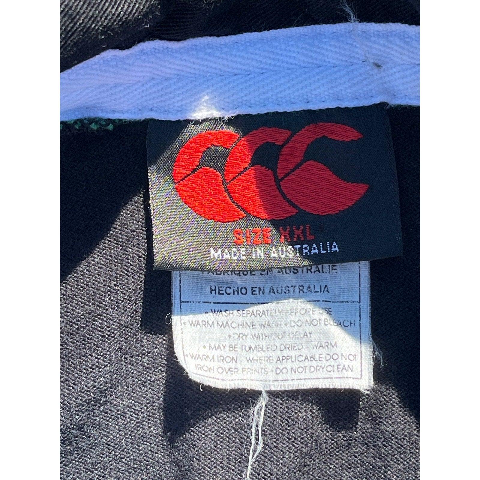 Celebrate Irish rugby heritage with this vintage Canterbury of New Zealand rugby jersey, men’s XXL, Made in Australia. Featuring the classic embroidered shamrock crest and CCC logo, this long sleeve heavyweight cotton jersey reflects the durability and tradition that made Canterbury a staple of international rugby.