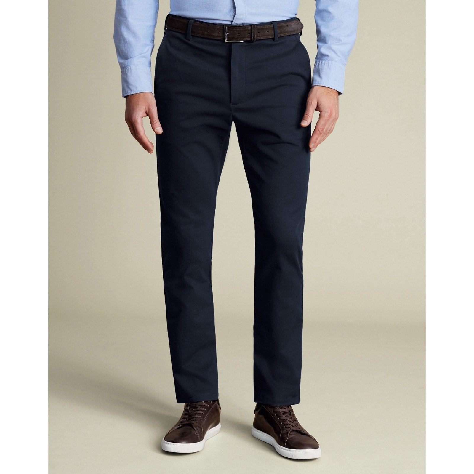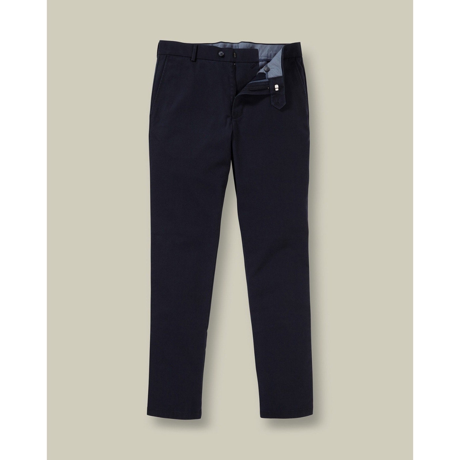 Step into refined comfort with these Charles Tyrwhitt Classic Fit Stretch Chinos in timeless navy. Expertly crafted for versatility, these trousers blend British tailoring with modern stretch for effortless movement and an elegant drape.