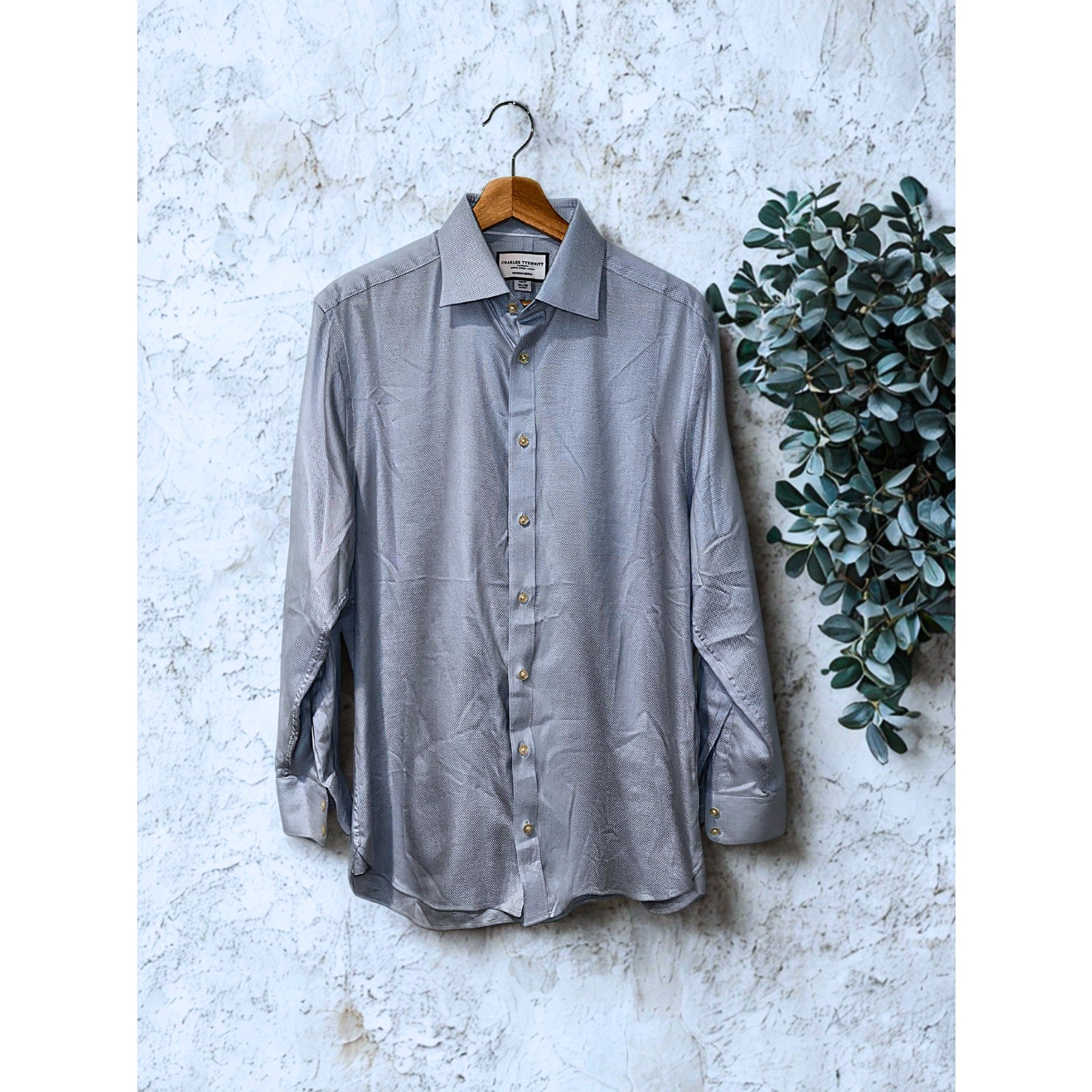 Charles Tyrwhitt Dress Shirt Non Iron Slim Fit Blue Egyptain Cotton Sz. 15.5/35