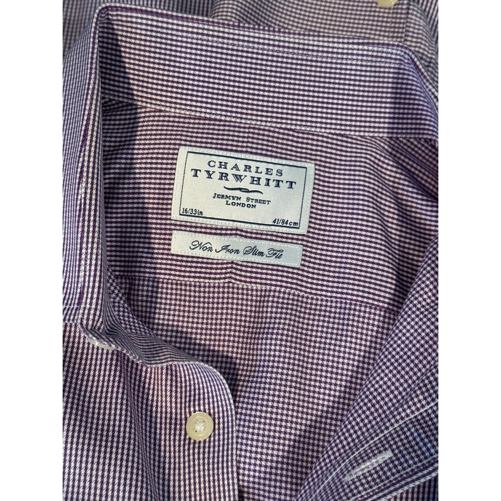 The Charles Tyrwhitt Dress Shirt in size 16/33 is a stylish and versatile option for any man looking for a classic and designer piece. This slim fit shirt features a collared neckline, button closure, and long sleeves, making it suitable for various occasions including formal events, business meetings, and casual parties. The check pattern and embroidered logo accents add a touch of sophistication, while the non-iron feature ensures low maintenance and ease of care. Made of 100% cotton blended fabric, this shirt is machine washable and a must-have for any man's wardrobe.