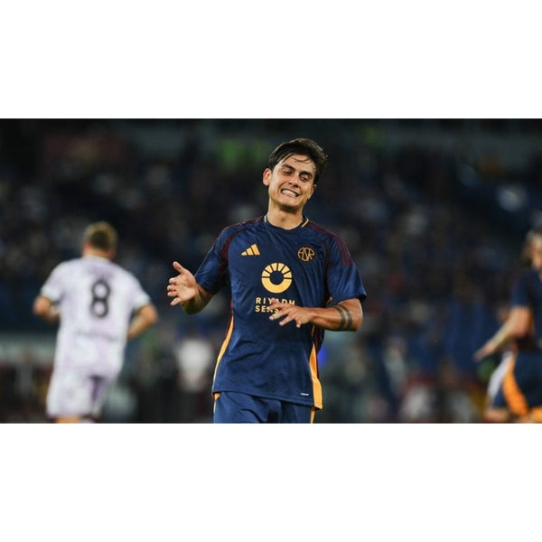 Step onto the pitch in elite style with this Adidas AS Roma 2024/25 Third Jersey, a standout kit featuring a bold navy, maroon, and gold colorway. Designed for performance with a slim-fit cut, this top delivers lightweight comfort and modern football aesthetics. Inspired by the club’s deep heritage and global fanbase, the jersey includes the iconic ASR crest and the Riyadh Season sponsor graphic. Perfect for collectors, supporters, and players alike — and this one is NWOT, meaning it’s never been worn and is in excellent, like-new condition.