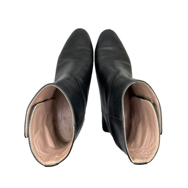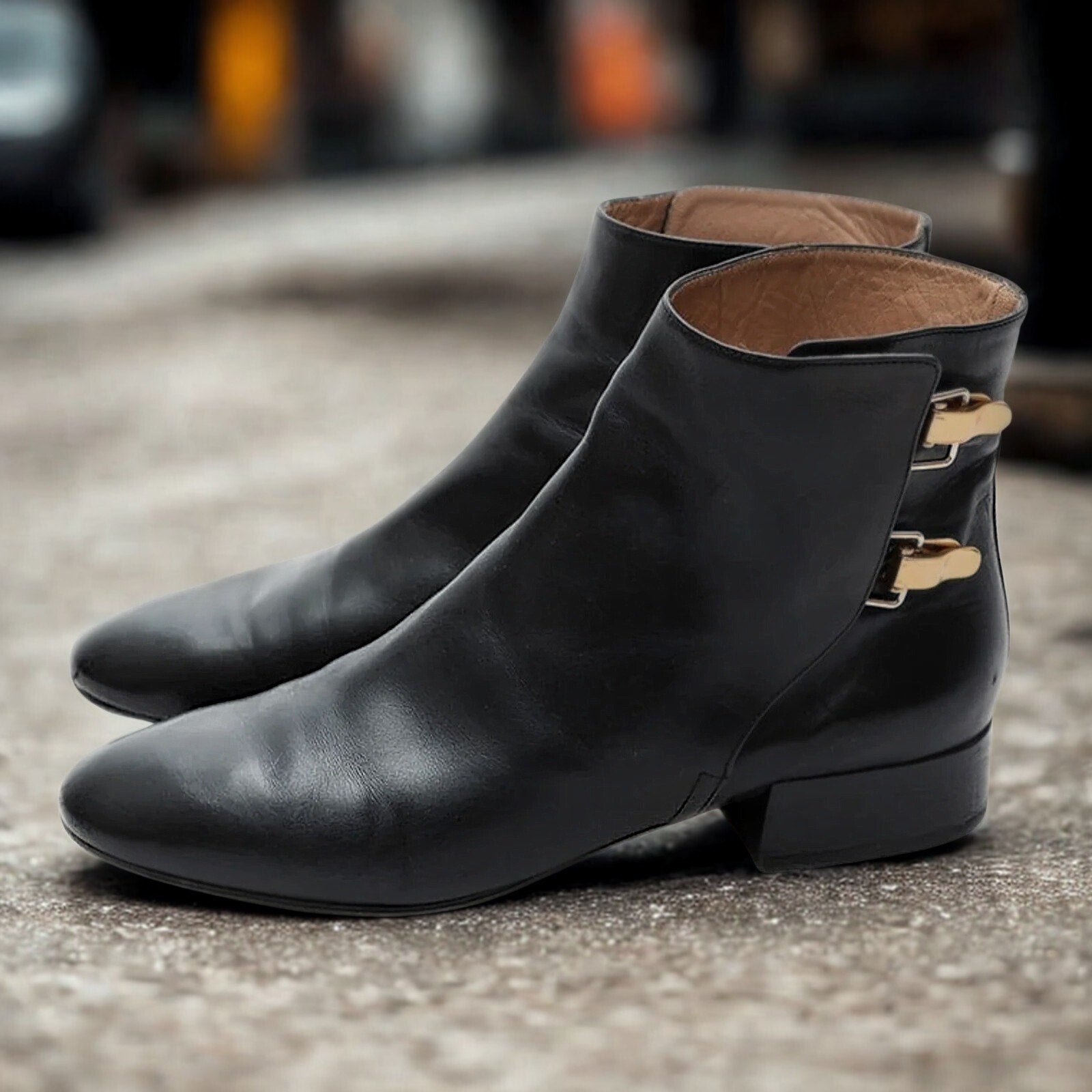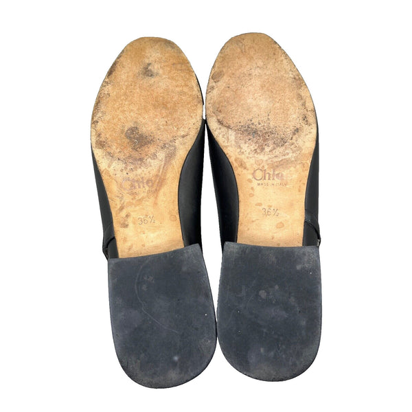 Chloe Double Buckle Black Flat Ankle Boot Gold Hardware Sz. 36.5 Made in Italy