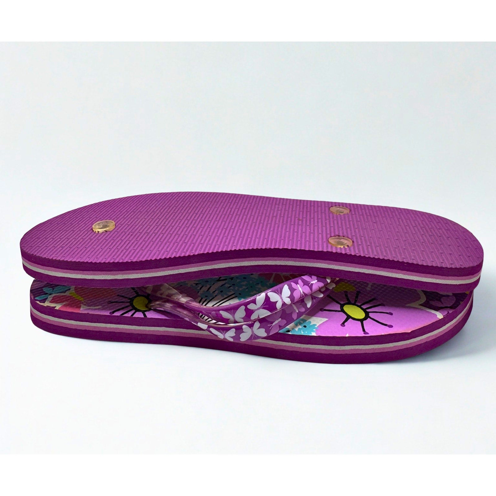 The Vera Bradley Flip Flops Thong Sandal in size L 9-10 features a beautiful Flutterby Floral & Butterflies pattern, making it perfect for casual occasions during the summer and spring seasons. These slip-on sandals have a flat heel and are designed for comfort and breathability, with a rubber outsole and synthetic lining. The theme of flowers and the brand's logo accents add a touch of style to these versatile flip flops from Vera Bradley. Ideal for women looking for a fashionable and comfortable sandal option.
