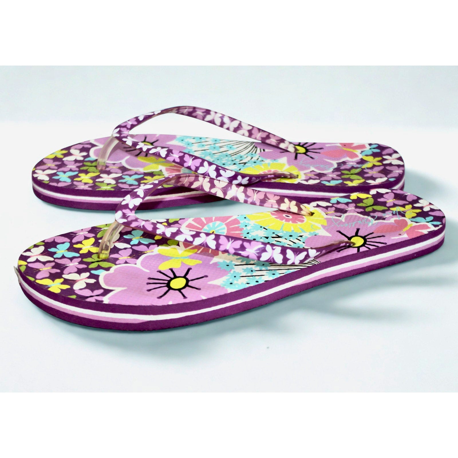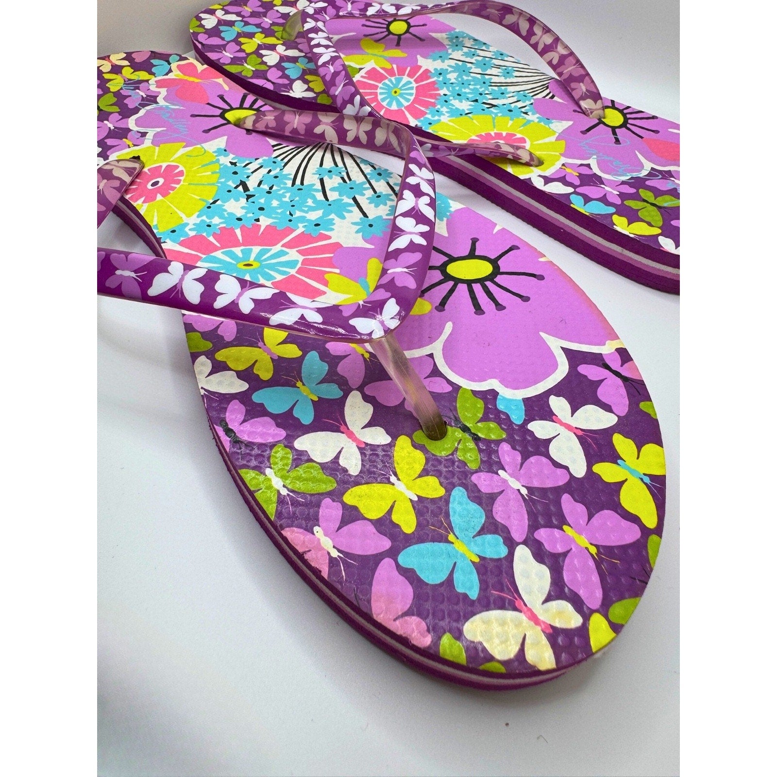 Vera Bradley Flip Flops Thong Sandal Wo's L 9-10 Flutterby Floral & Butterflies