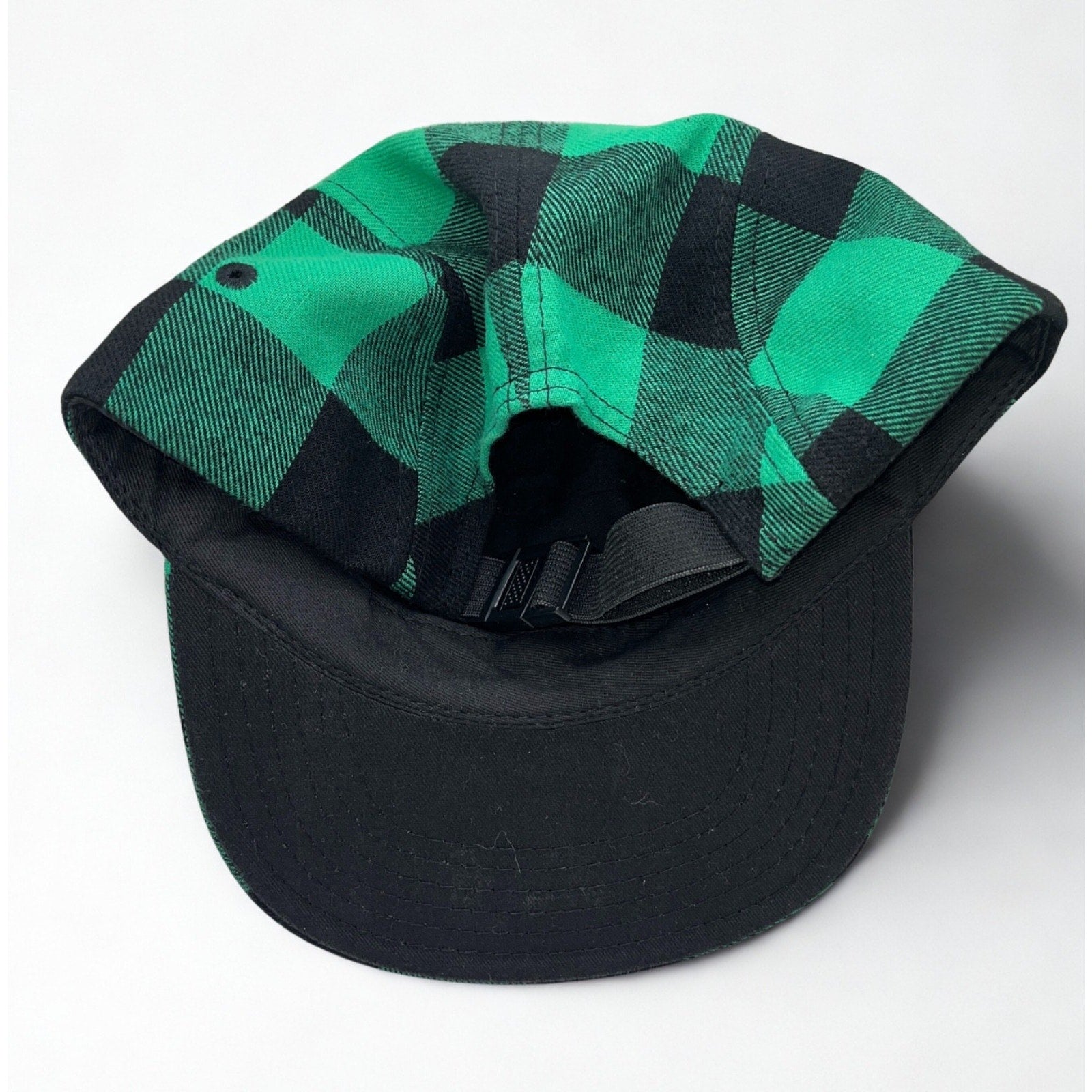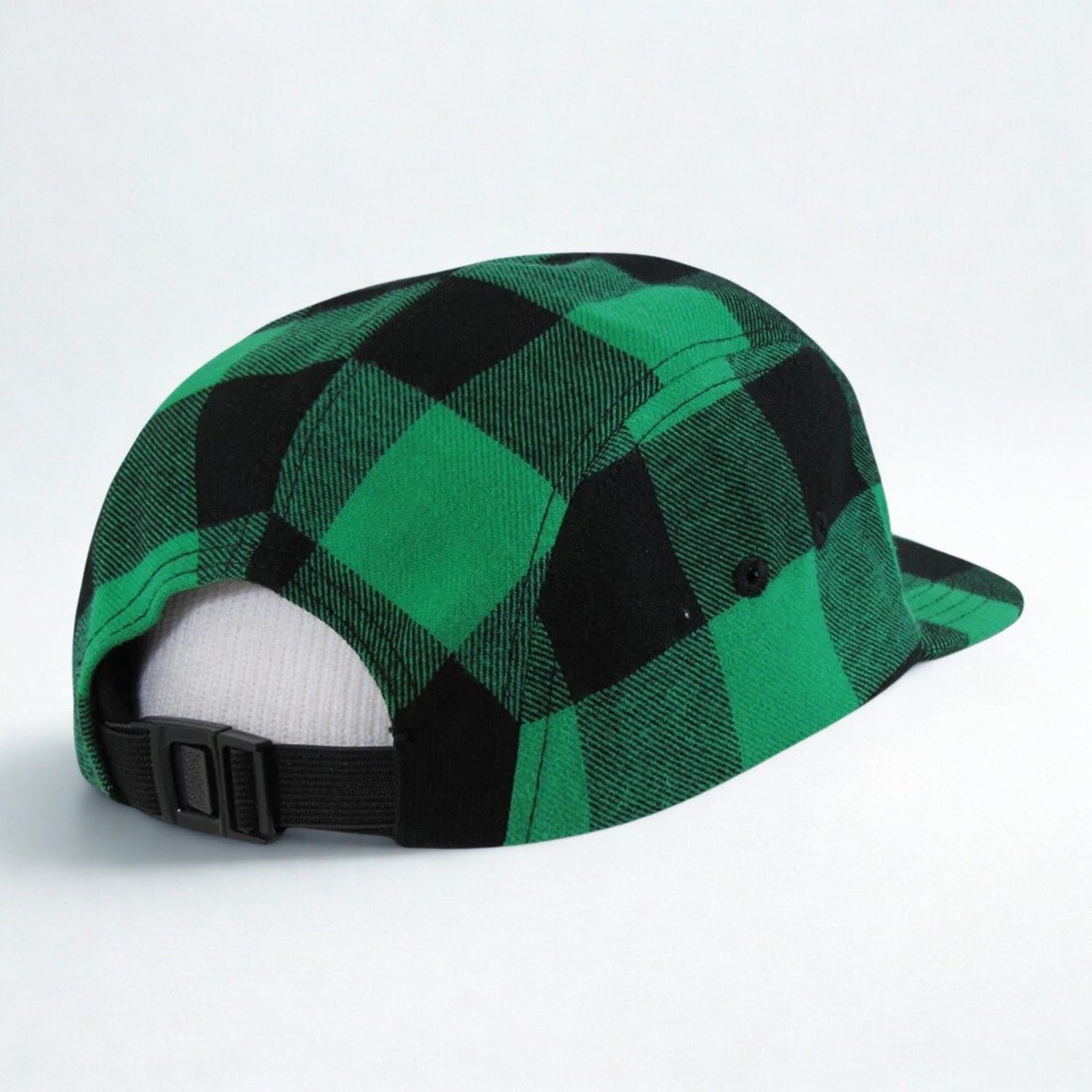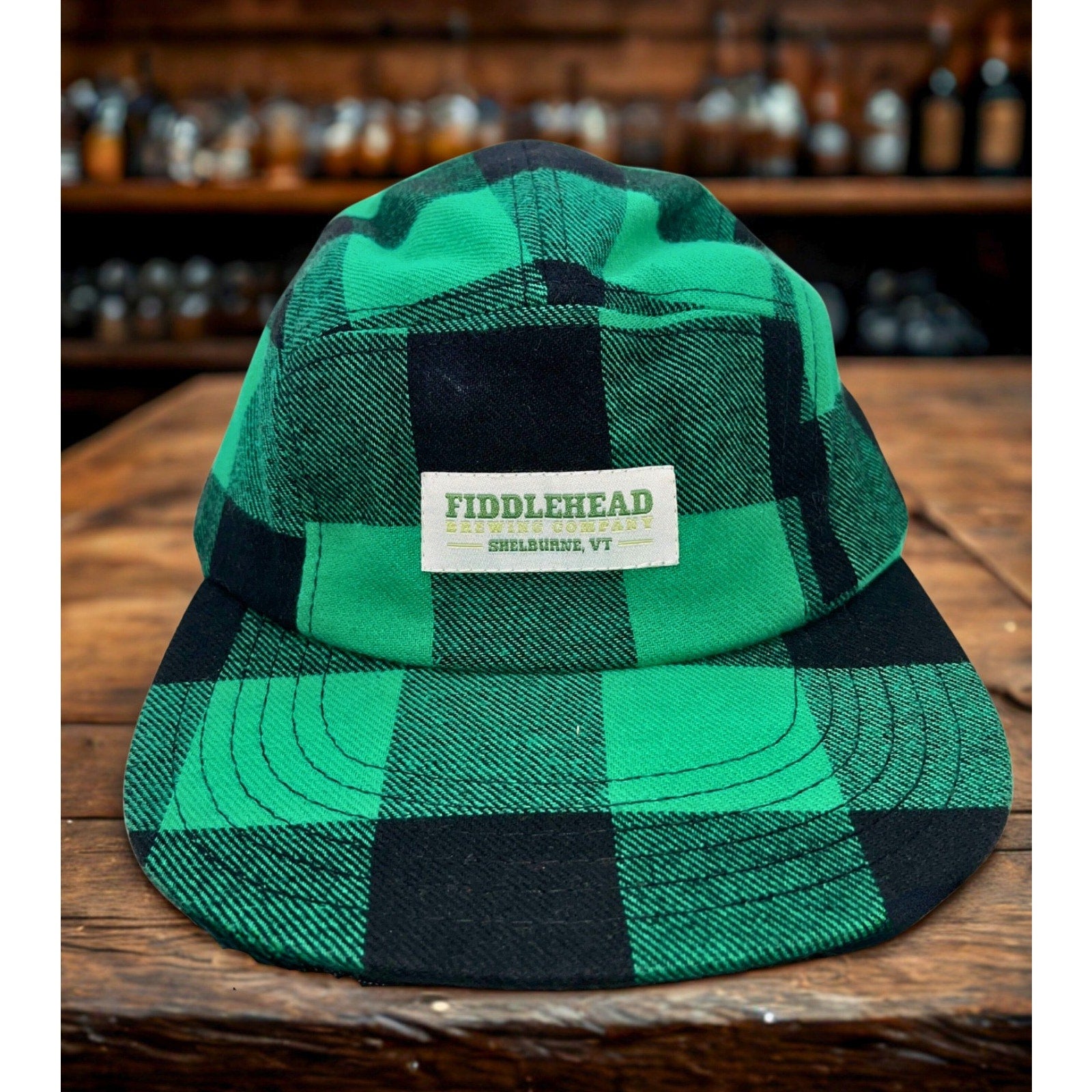 Authentic Fiddlehead Brewing Company camper cap featuring a bold green & black plaid pattern, produced by Decky in their popular 984 5-panel silhouette. This piece blends classic New England flannel vibes with modern craft-brew culture, making it equally at home in a brewery, outdoors, or everyday rotation.