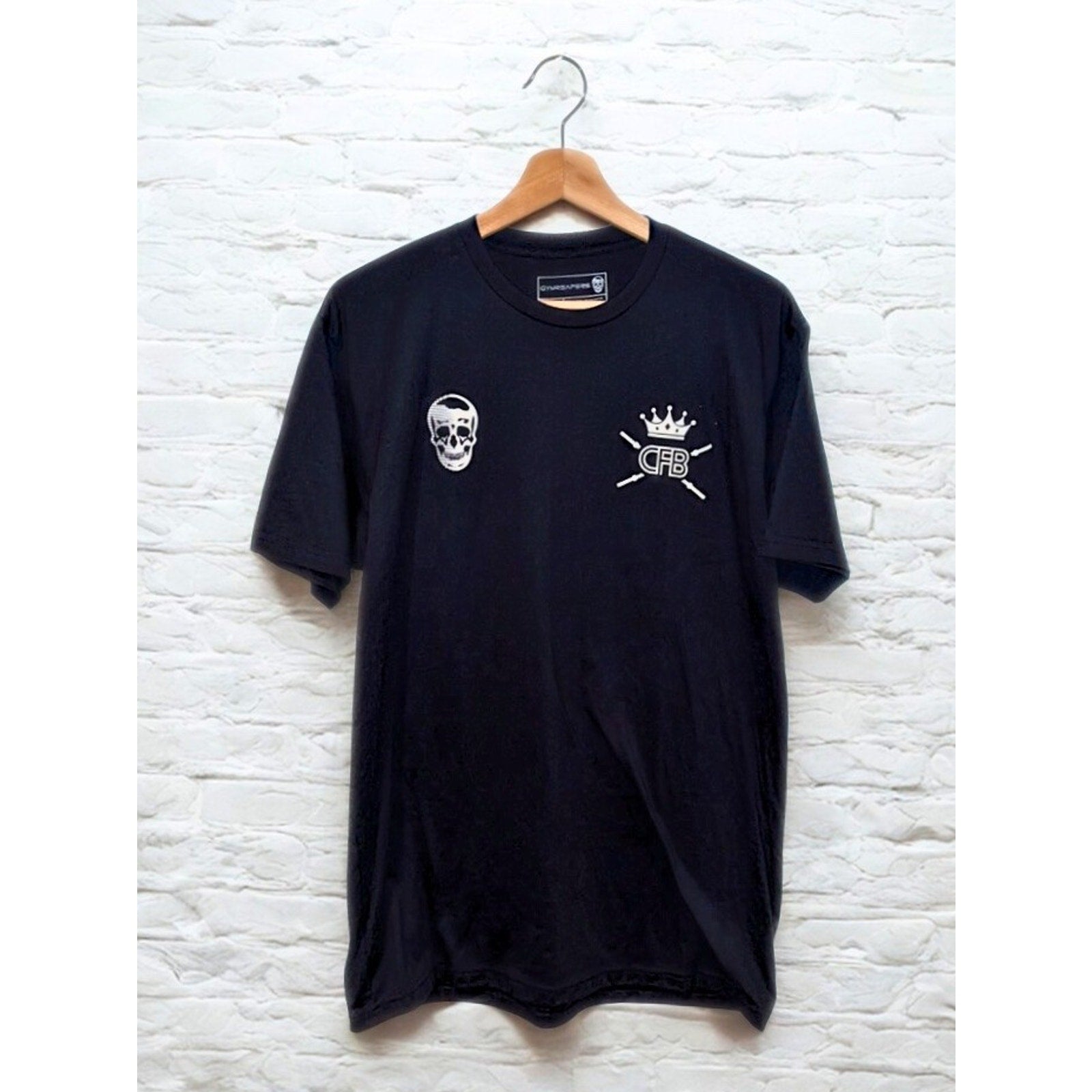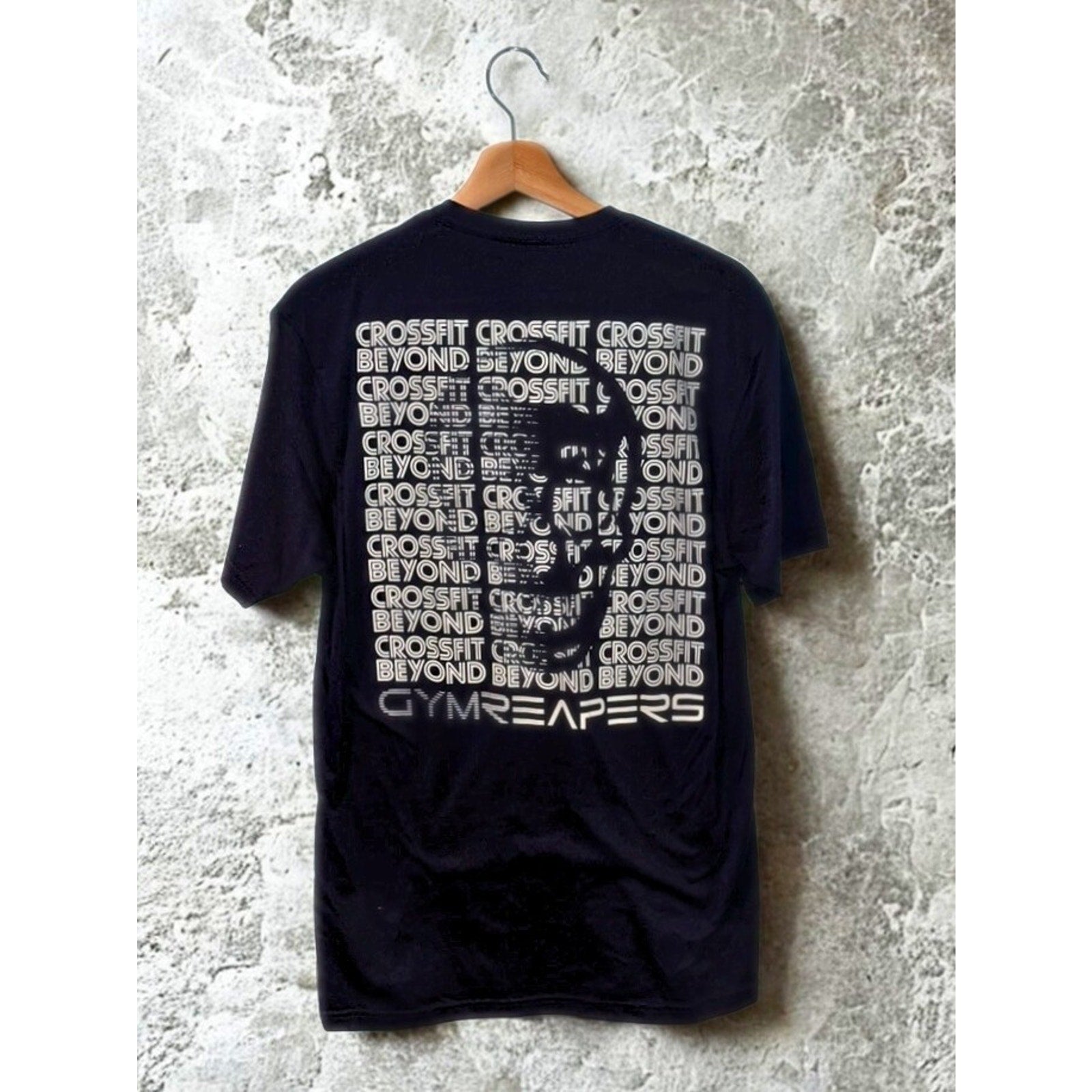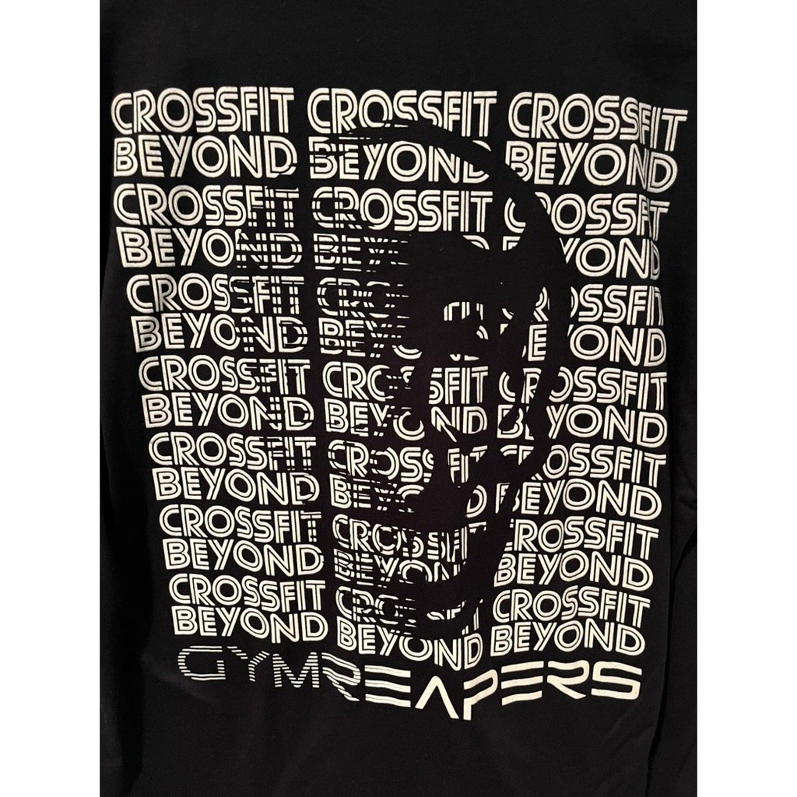 • Back graphic showcases an oversized skull blended with repeating typography reading "CrossFit" and "Beyond", along with the Gymreapers wordmark.