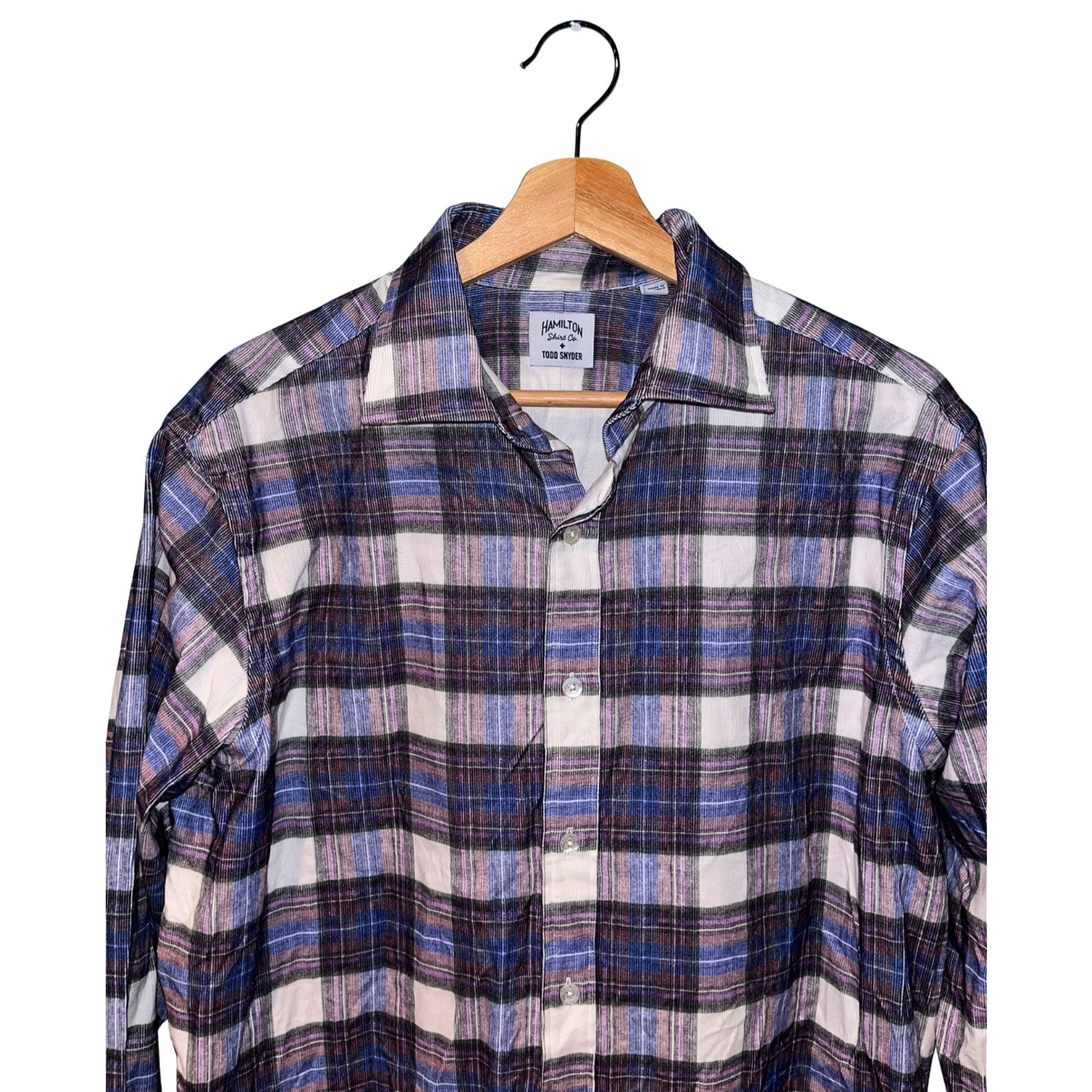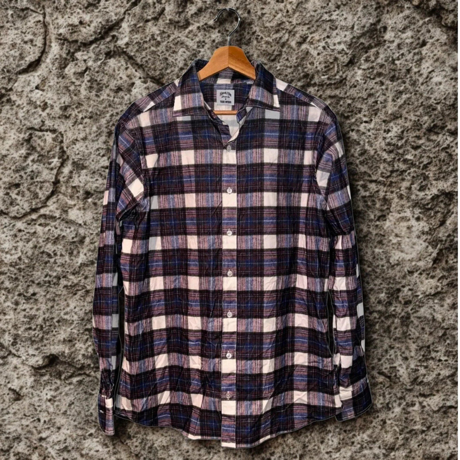 The Hamilton + Todd Snyder Check Gingham Button Down Shirt in size 16 features a classic check pattern in a multicolor design. Made from lightweight cotton twill fabric, this shirt is machine washable and suitable for various occasions such as travel, casual outings, and business meetings. The button-down collar, long sleeves, and regular fit offer a comfortable and breathable option for all seasons. With a vintage and 90s-inspired theme, this shirt combines timeless style with modern features like easy care and easy wear.