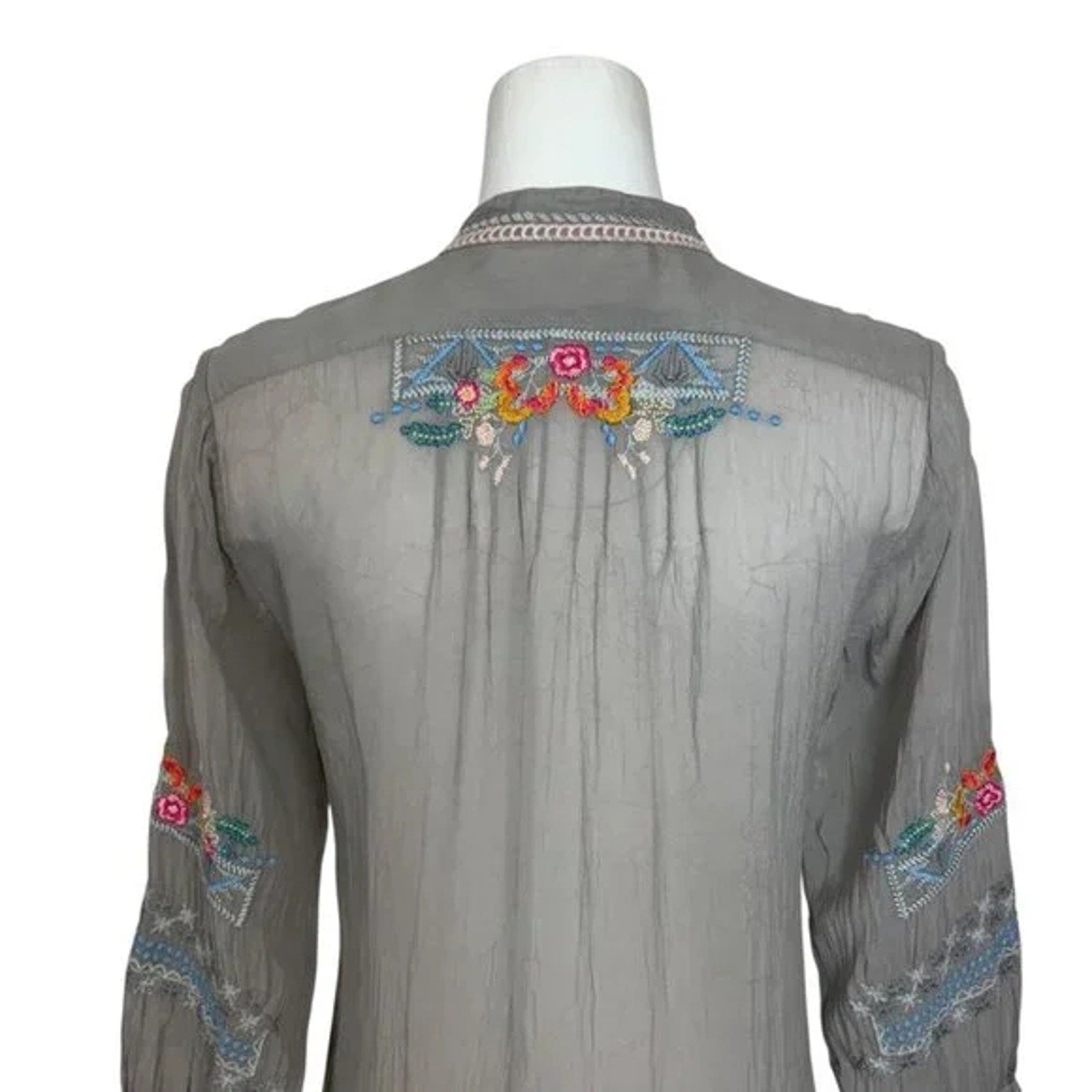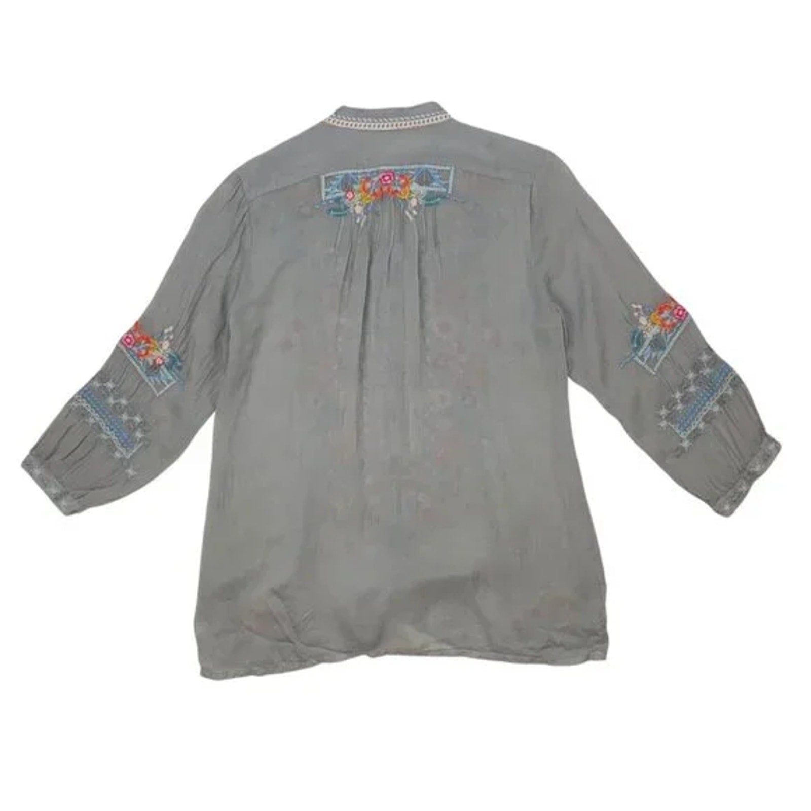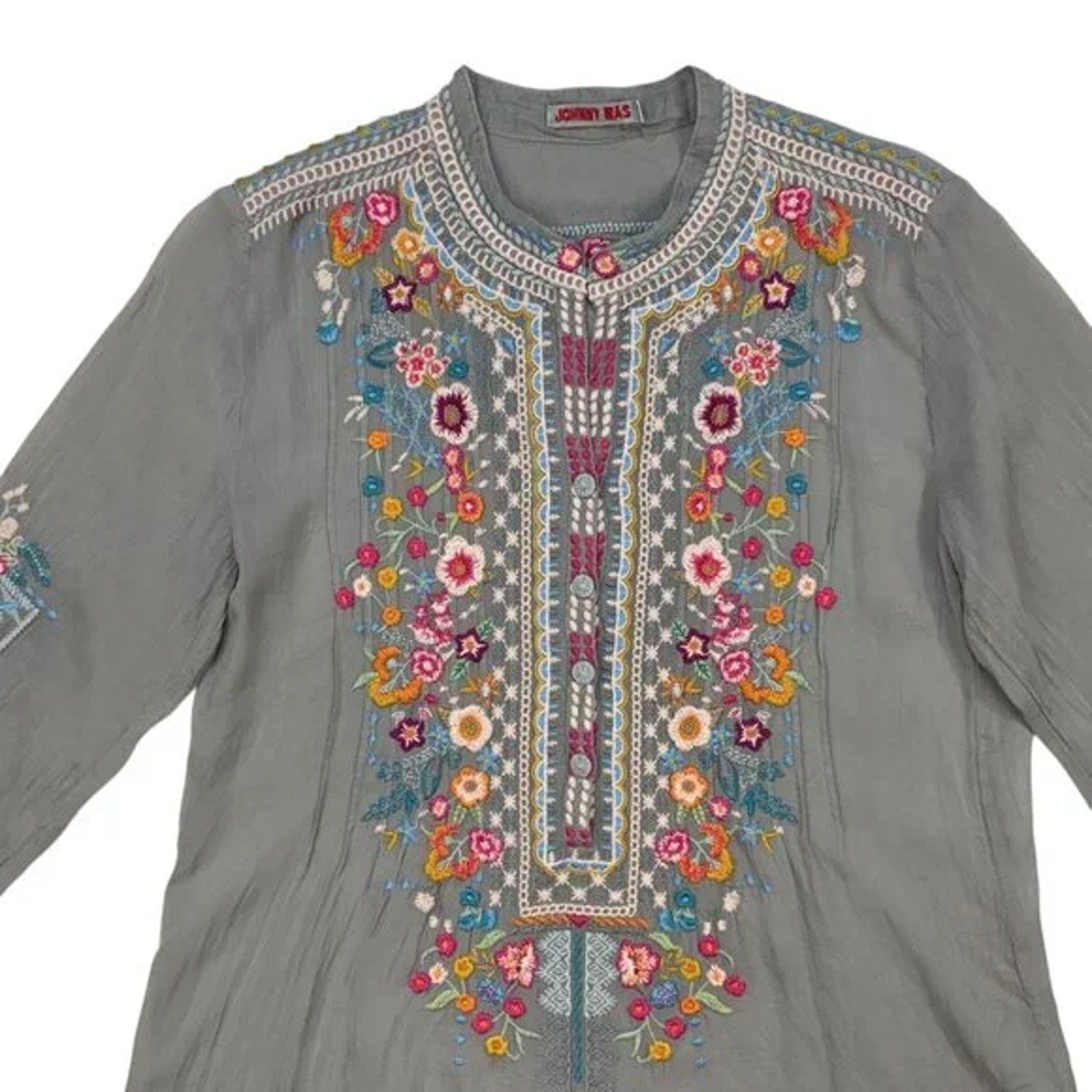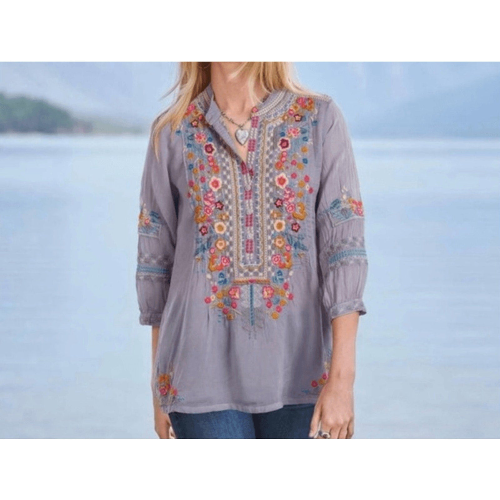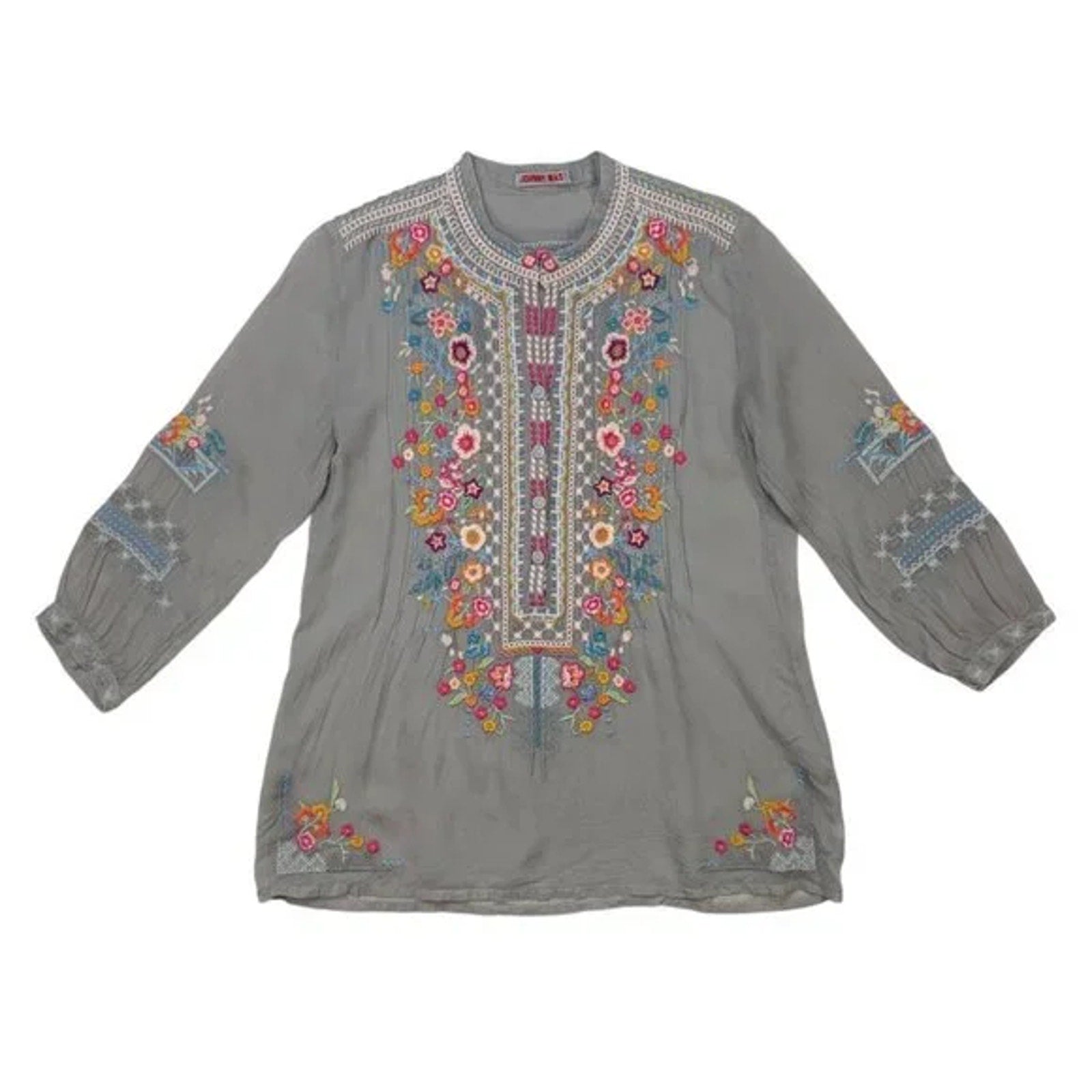 Step into effortless boho elegance with this Johnny Was Bethanie Embroidered Rayon Tunic Top in Women’s Size 2XL.