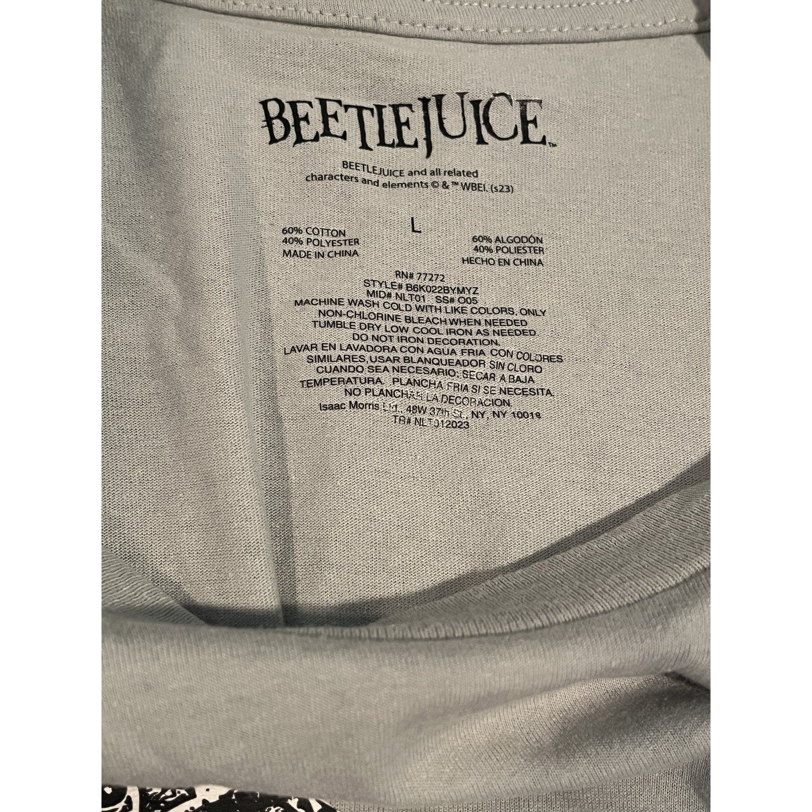 This limited edition Beetlejuice t-shirt is a must-have for any fan of the iconic cartoon character. Featuring a unique design by Isaac Morris, this unisex tee is perfect for any season and occasion. Made of 100% cotton, the shirt is machine washable and fits true to size. The multicolor print depicts the beloved Beetlejuice in a spooky yet playful manner, with elements of Halloween, sandworms, and tombstones. The shirt is perfect for personalizing, making it a great addition to any wardrobe. Don't miss out on this rare find, available in size L.