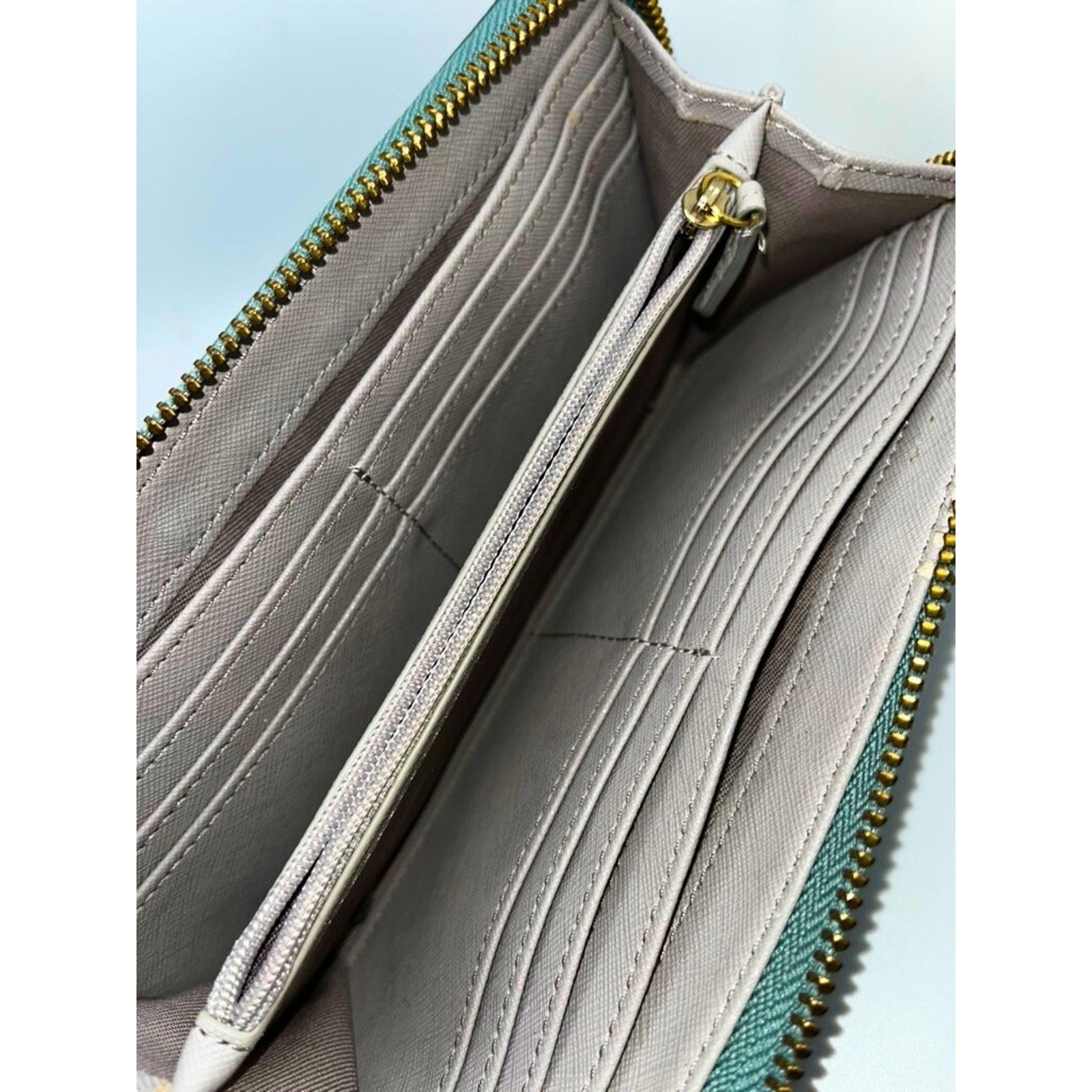 Fossil Zip Around Pebbled Leather Wallet Mint Green Gold Hardware Clutch