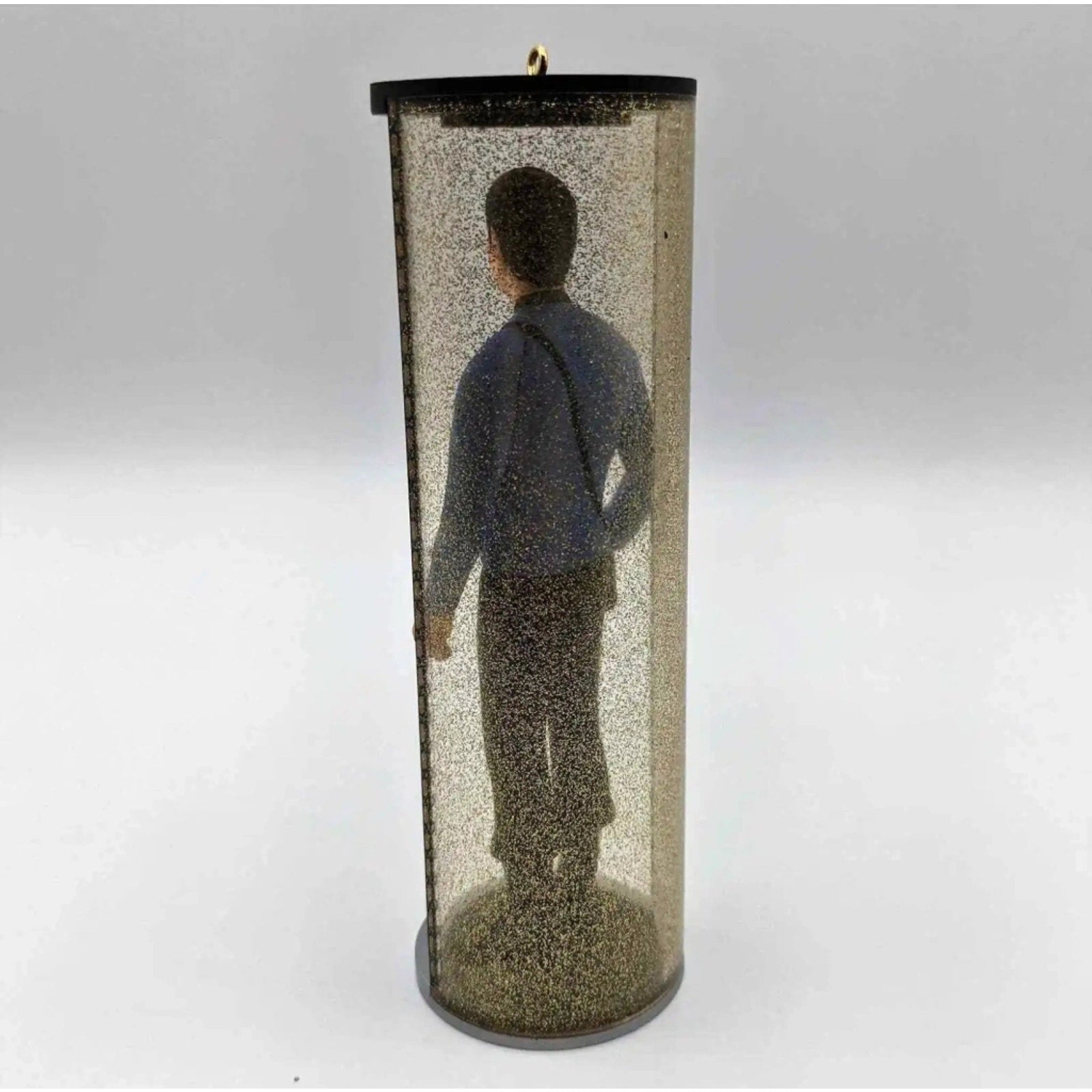 These are the famous words of Dr. Leonard "Bones" McCoy, the Chief Medical Officer of the U.S.S. Enterprise. Although the colorful doctor has the best sick bay in all of Starfleet at his disposal, he seems most comfortable being a simple doctor and genuinely seems to help healing the sick - although his comments about the 1990s being "the dark ages" in Star Trek IV were quite humorous when he spoke to a patient about kidney dialysis. However, this 1997 Hallmark ornament depicts a rather ironic view of Dr. McCoy (played by actor DeForrest Kelly), as it has him inside of a transporter - a device that the doctor hates to use. Dr. McCoy appeared in the original TV series and the six feature films, and also made an appearance as an admiral on Star Trek: The Next Generation. His parting words to Commander Data (about the Enterprise) were: "Treat her like a lady, and she'll always bring you home". Dr. McCoy was also quite a cook, according to his friend James (Jim) Kirk - who asked for his "secret ingredient" - which happened to be Tennessee Whisky - while they were camping after the good captain fell off of a huge mountain in Star Trek V.