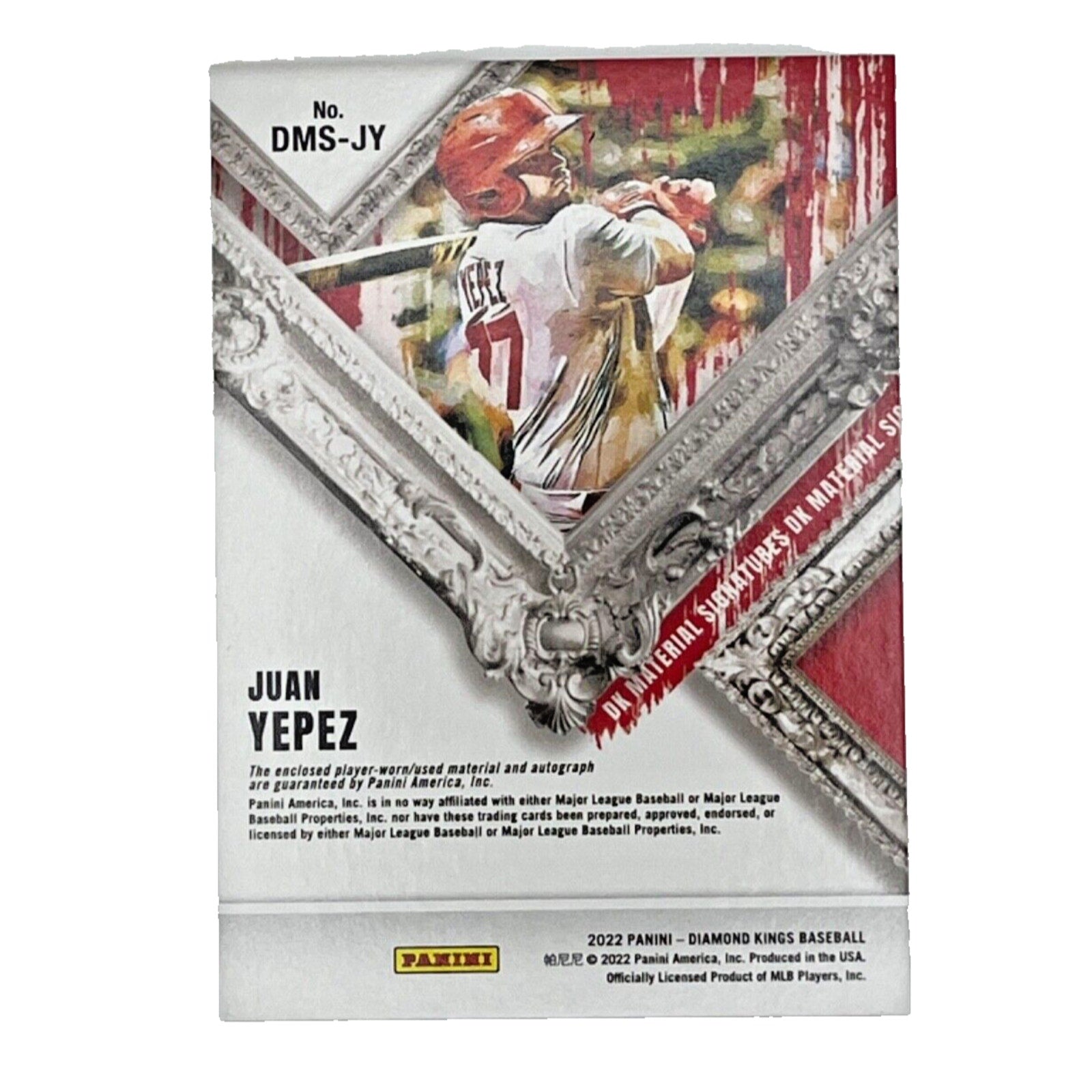 This rare and highly sought-after Juan Yepez Panini Diamond Kings Material Signatures trading card is a must-have for any serious baseball card collector. Featuring an authentic autograph from the former St. Louis Cardinals player, this card is a limited edition, serial numbered 66/99, and is an original, not a licensed reprint. Made from high-quality card stock, this card is a standard size and is an insert in the 2022 Panini Diamond Kings set. The autograph is cut in a unique format and is authenticated by Donruss. This card also features memorabilia and is a short print, making it an even more valuable addition to any collection. Celebrate Juan Yepez's legacy with this amazing card.
