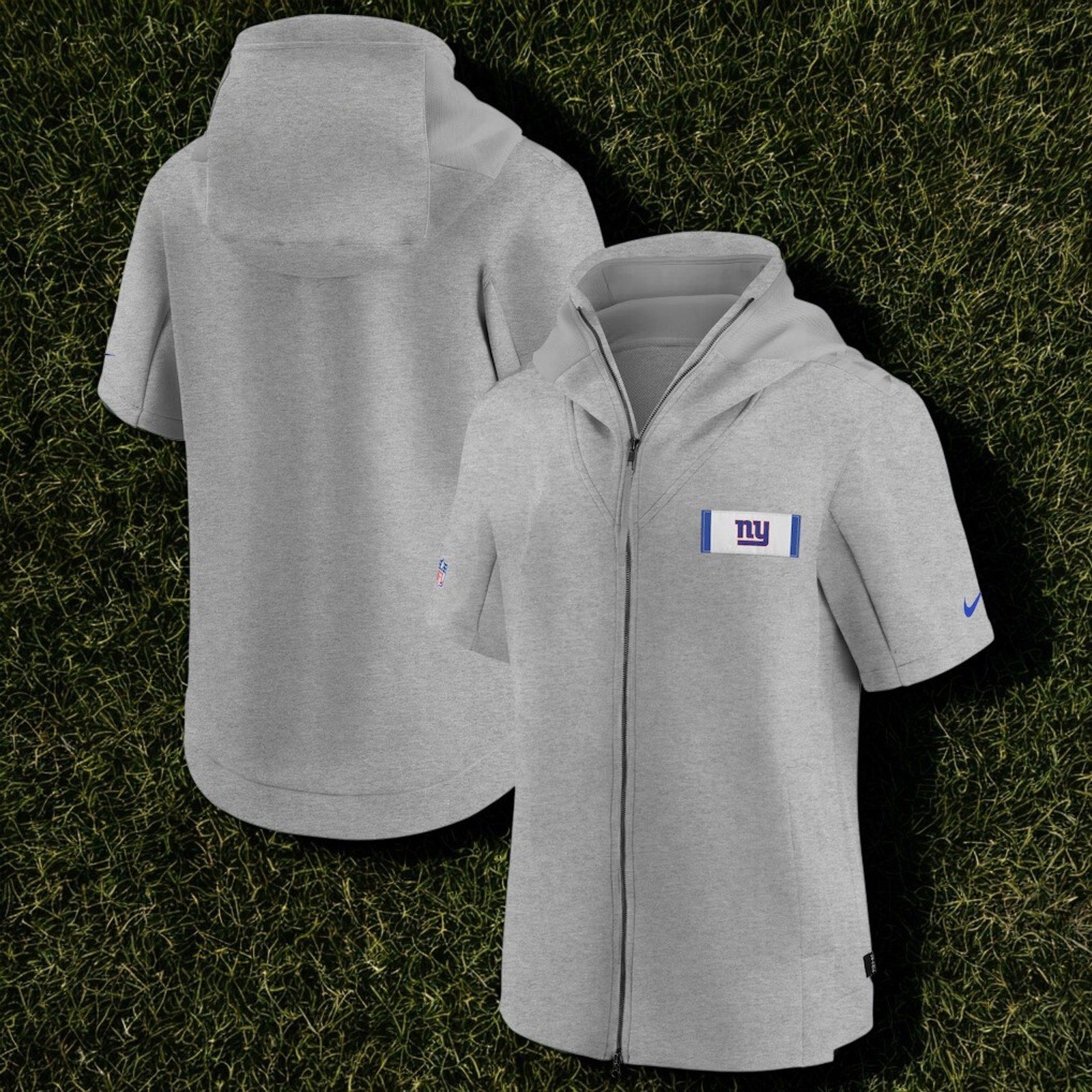 This official New York Giants sideline hoodie jacket from Nike is built for performance and modern style. Designed as part of the Sideline Showout collection, it features a streamlined athletic fit with short sleeves, making it ideal for layering during training, travel, or game day. Finished with authentic team and league branding, this piece delivers a true on-field look straight from the Giants’ sideline.