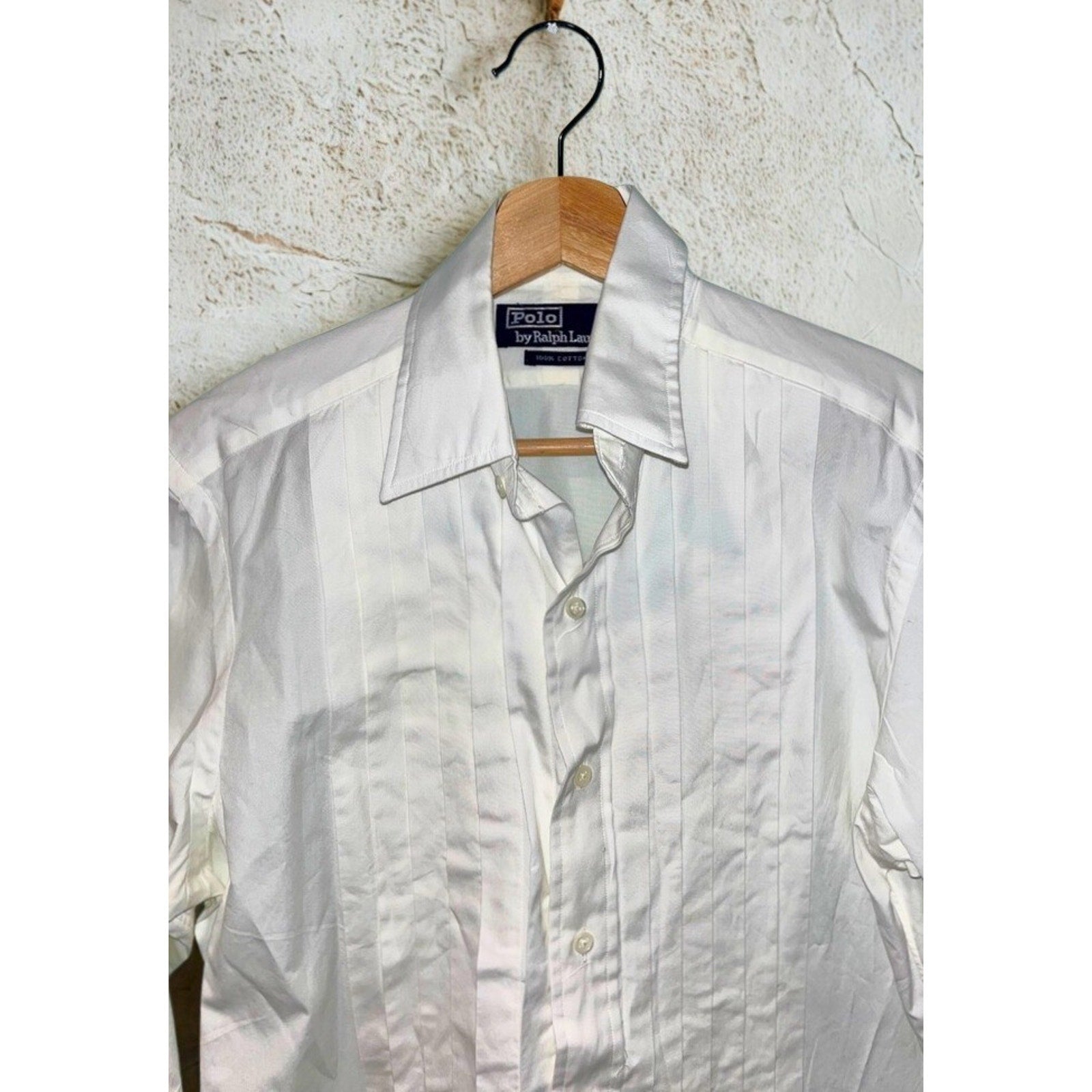 True vintage Polo tuxedo shirts from the 1980s are becoming increasingly difficult to find—especially in classic white with pleated fronts. A sharp, timeless piece that elevates any formal wardrobe and fits right into a curated vintage collection.