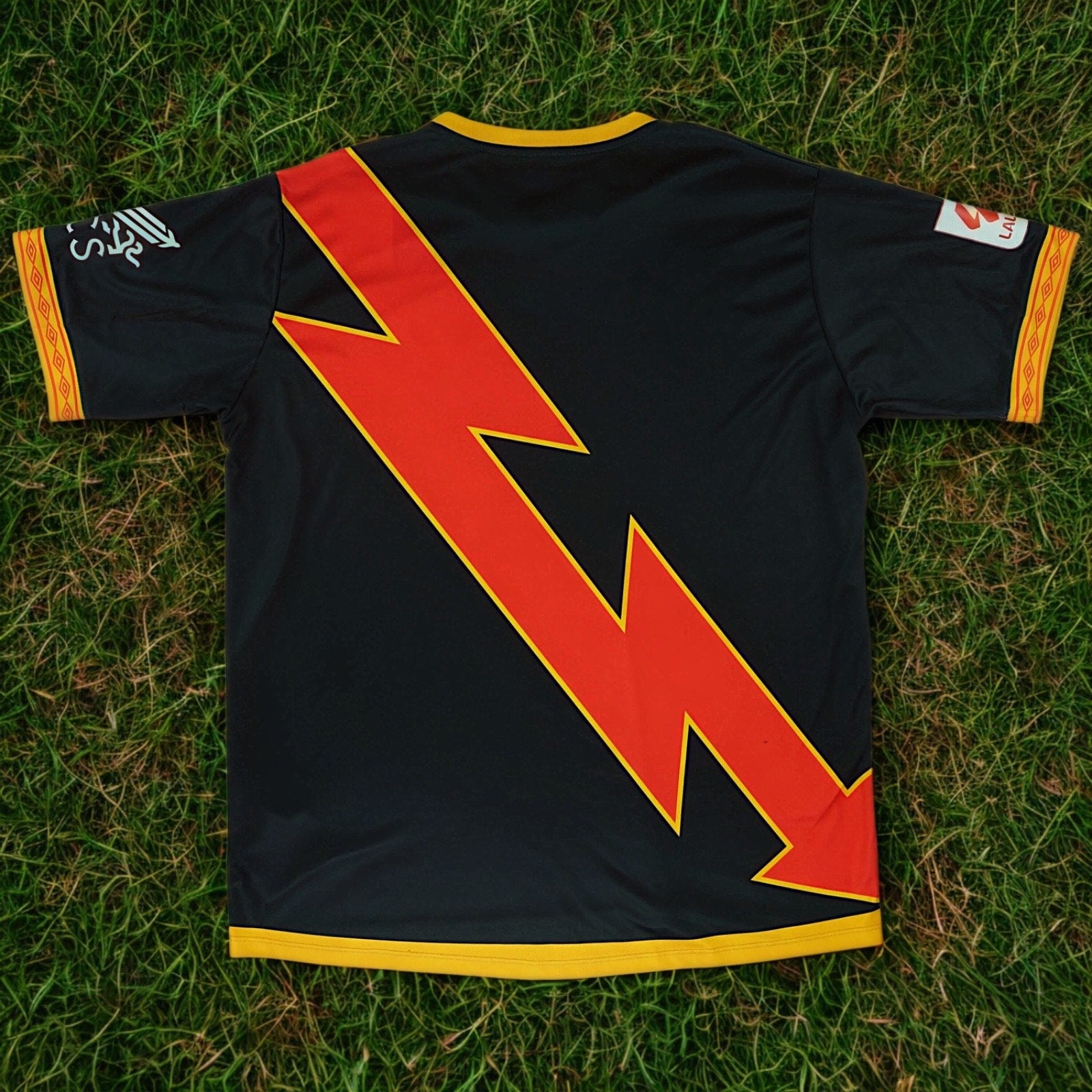 Feel the energy of Madrid’s working-class pride with this Rayo Vallecano 2023–24 Away Jersey by Umbro, featuring one of the boldest kits in European football. Known for their fearless attitude both on and off the pitch, Rayo’s iconic lightning bolt returns — this time reimagined in red and gold over deep black, symbolizing strength, unity, and resistance.