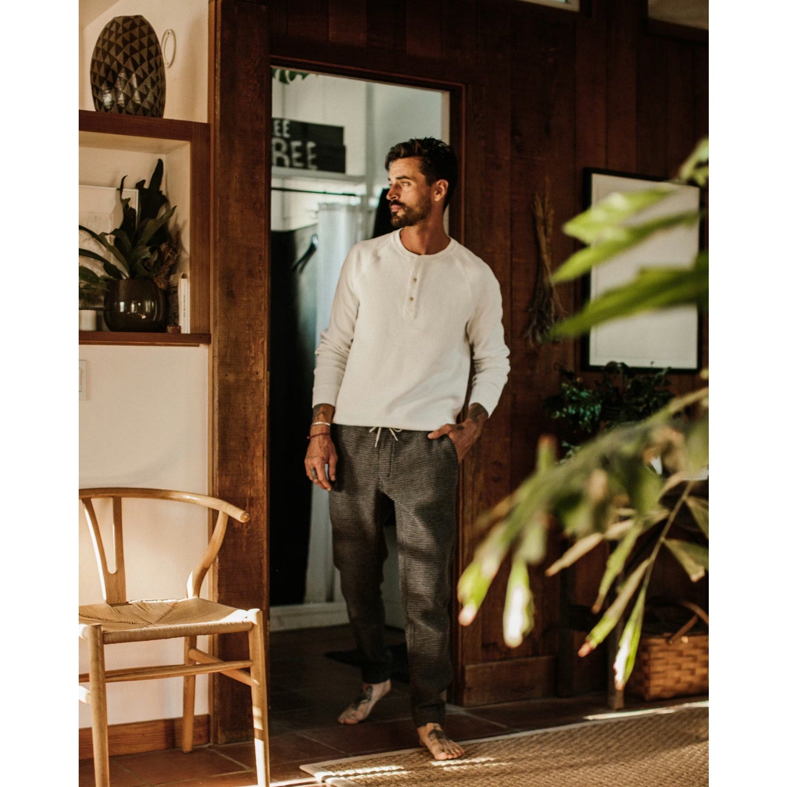 These Taylor Stitch Après Pants in Charcoal Sashiko deliver the perfect balance of comfort and refinement. Built from 100% organic cotton with a textured Sashiko slub weave, they wear like your favorite sweats but look sharp enough for everyday outings. Elastic cuffs, an adjustable drawcord waist, and a relaxed silhouette make them easy to live in, while TS’s signature craftsmanship elevates the entire piece.