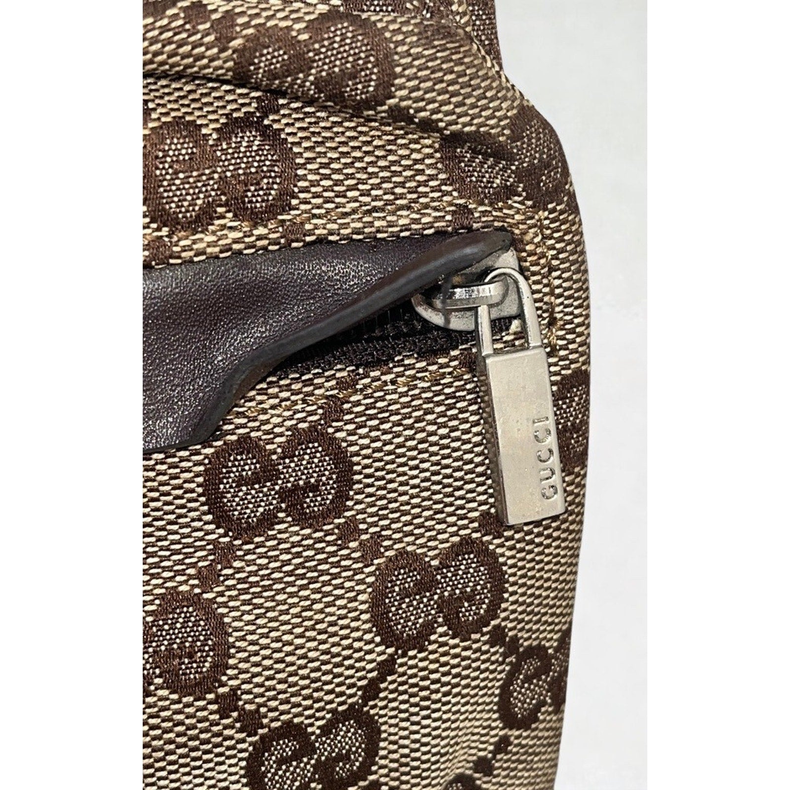Gucci GG Canvas x Leather Beige Brown Waist Bag Belt Bag Crossbody 28566 Italy