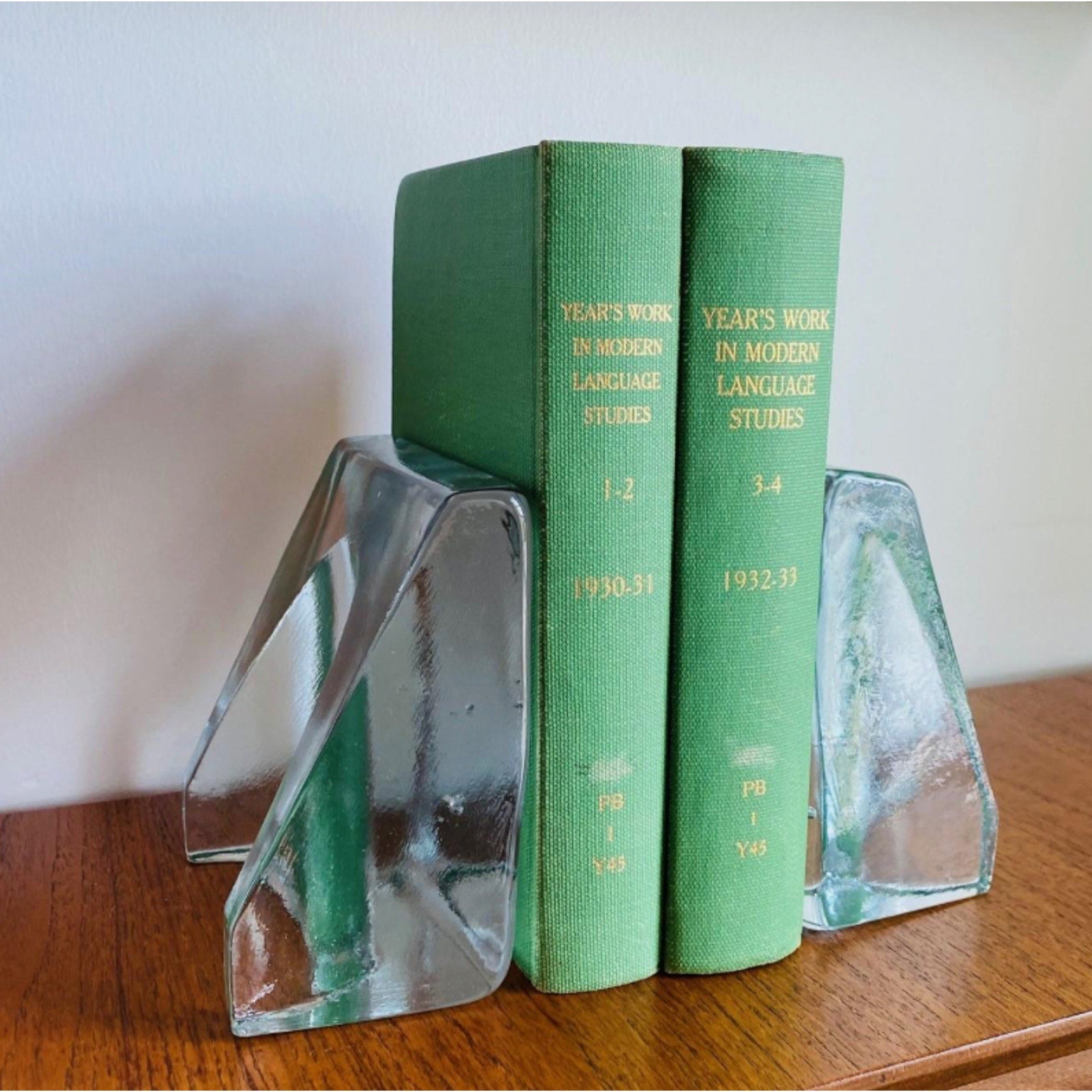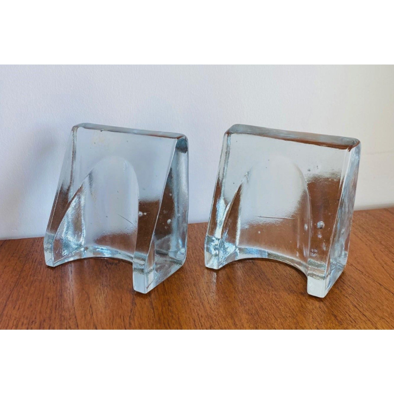 BLENKO by Wayne Husted Sculptural Wedge Bookends MCM Art Glass Glows