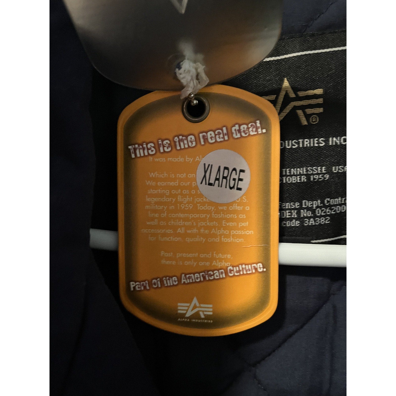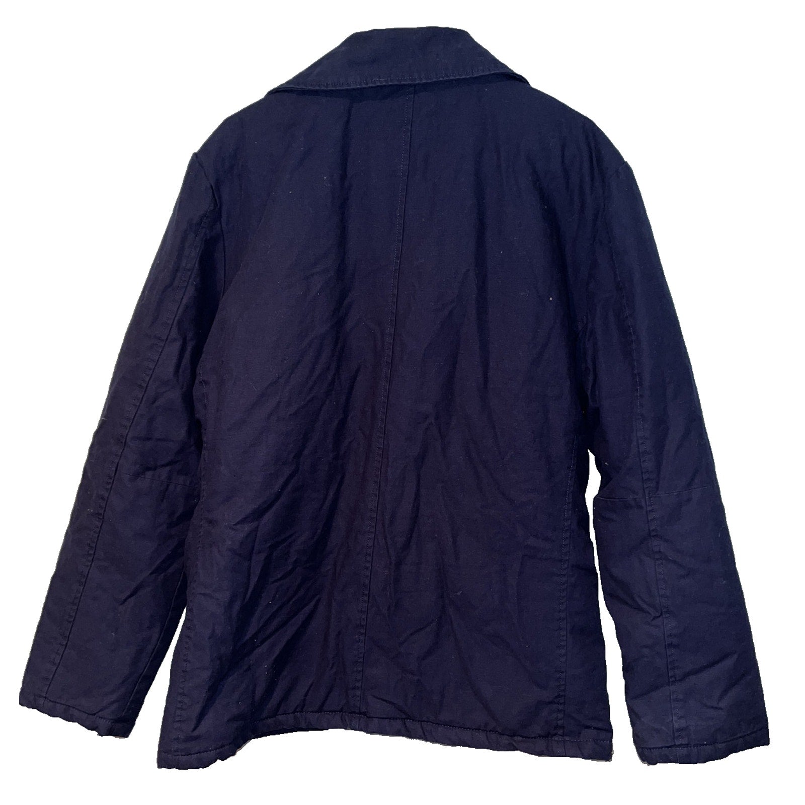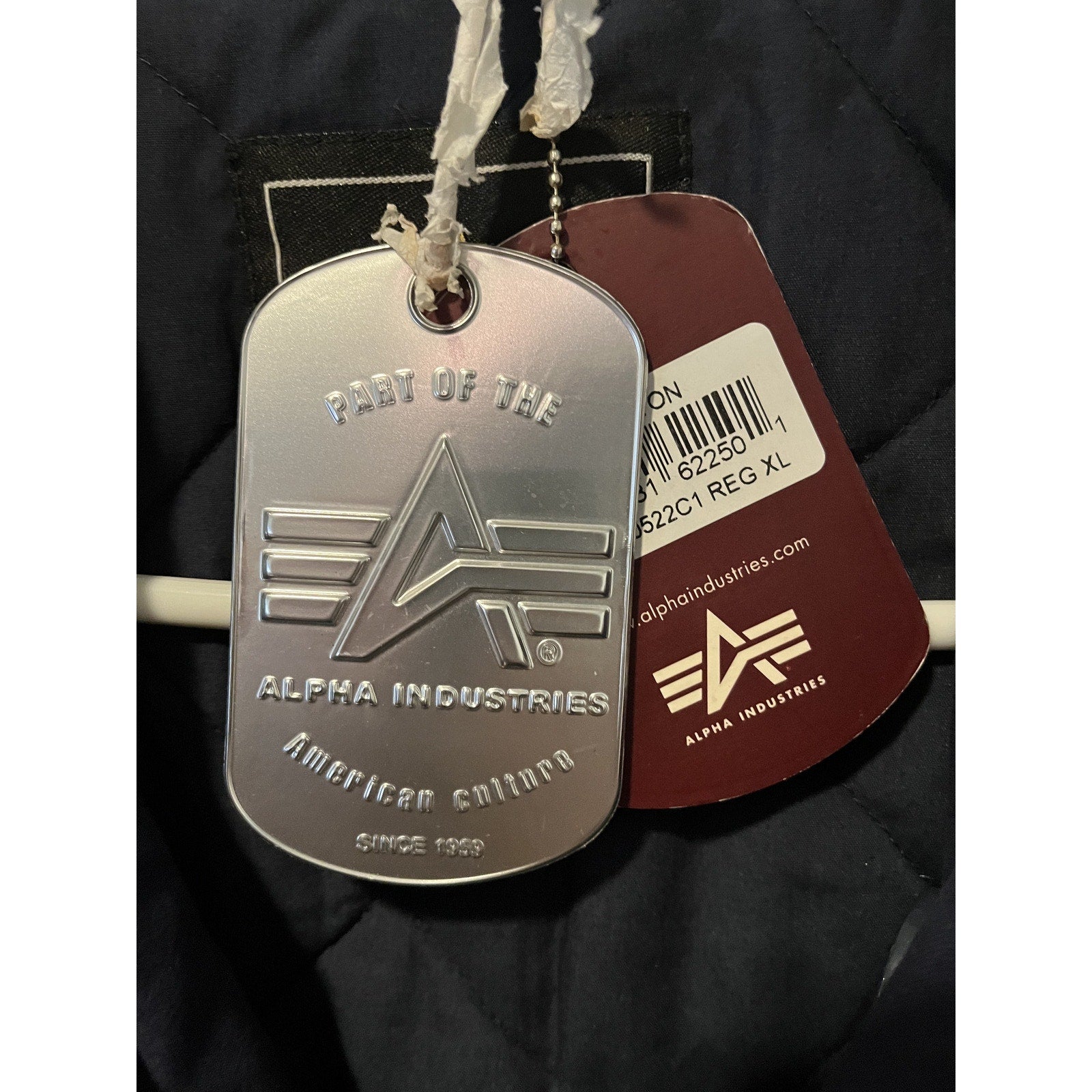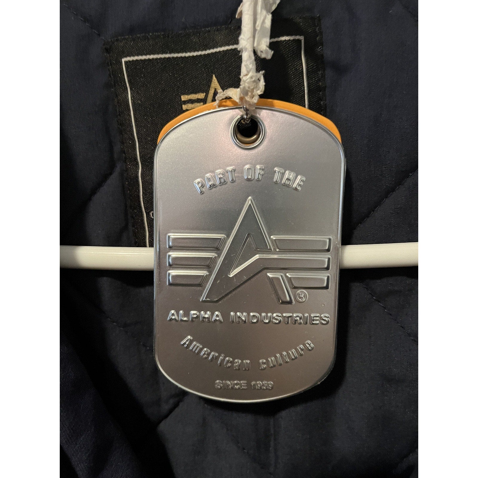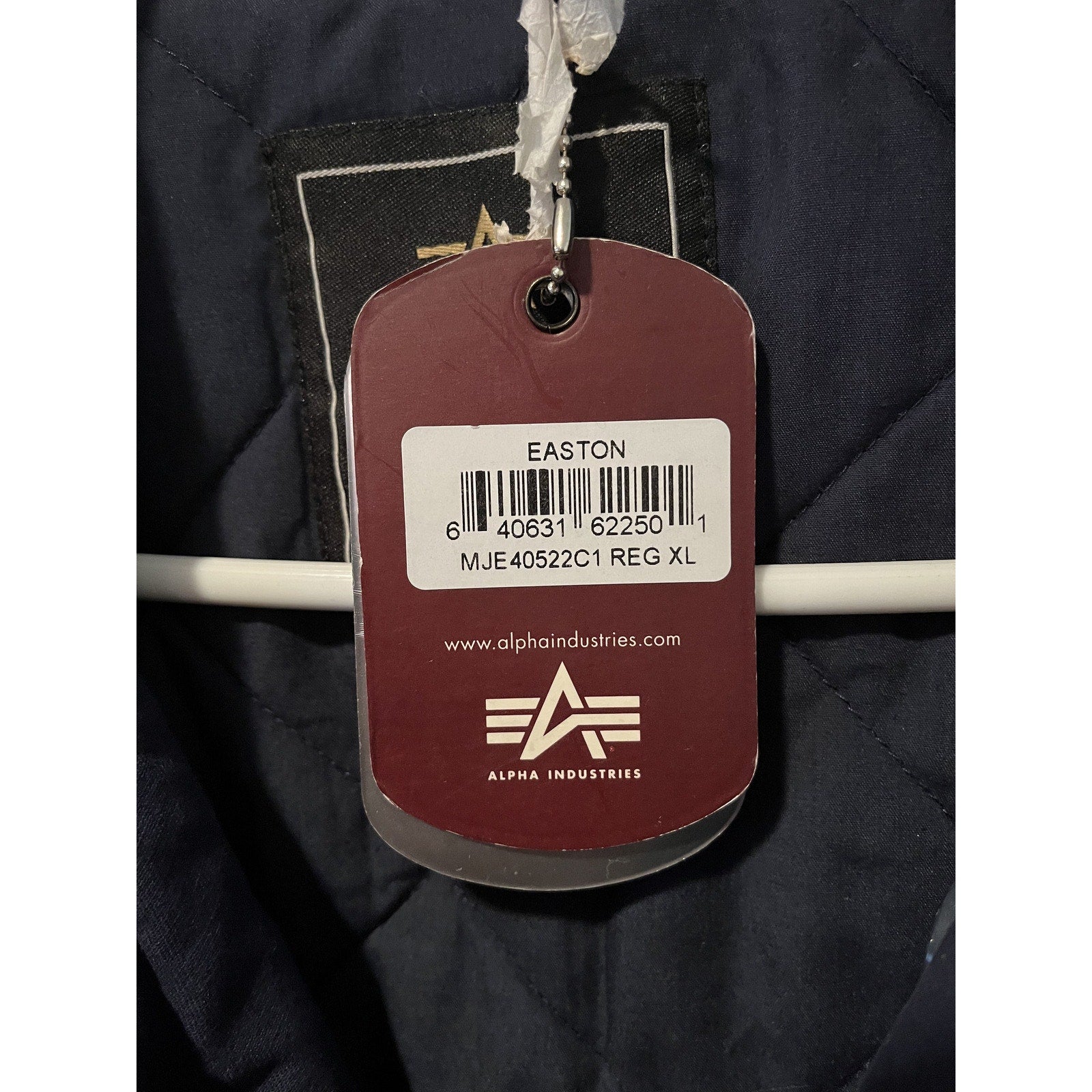 Wrap yourself in the timeless style of the Alpha Industries Men's Double Breasted Navy Blue Easton Pea Coat. This classic piece, size XL and new with tags, brings a touch of vintage-inspired fashion to your wardrobe with its quintessential 90s outdoor theme. Crafted from a durable cotton blend canvas and a cozy polyester lining, this coat ensures warmth and comfort during the cooler seasons of fall, spring, and winter. The coat's mid-length cut, spread collar, and versatile double-breasted button closure make it an ideal choice for various occasions, from casual outings to business meetings or travel. Practical features like bodywarmer, multiple pockets for essentials, and lightweight insulation merge functionality with style. The rare solid navy blue color, accented with quilted details and the Alpha Industries logo, lends an understated elegance to this unisex adult coat.