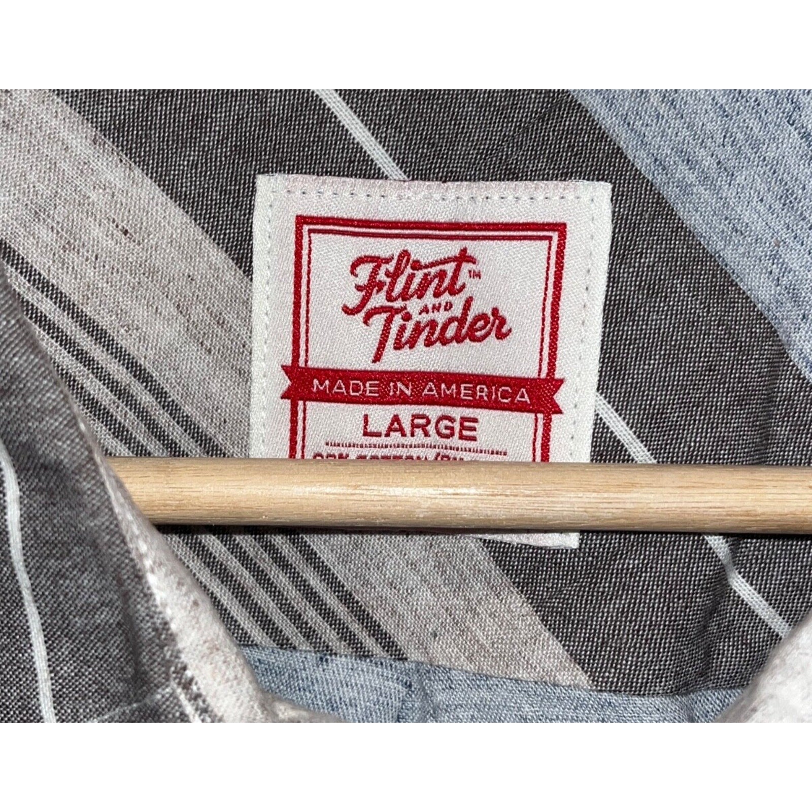 Flint & Tinder Mens Cotton Shirt Brown/Gray Striped Large Made in USA