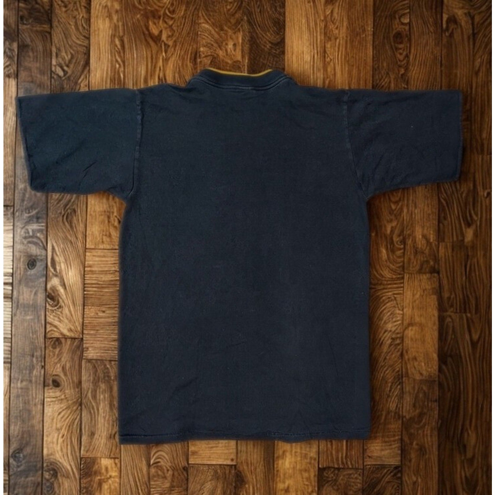 Vintage pre-owned condition. Shows visible wear consistent with age, including fabric softening and slight shrinkage. Graphics remain intact. No major holes noted. Please review photos for full condition details.