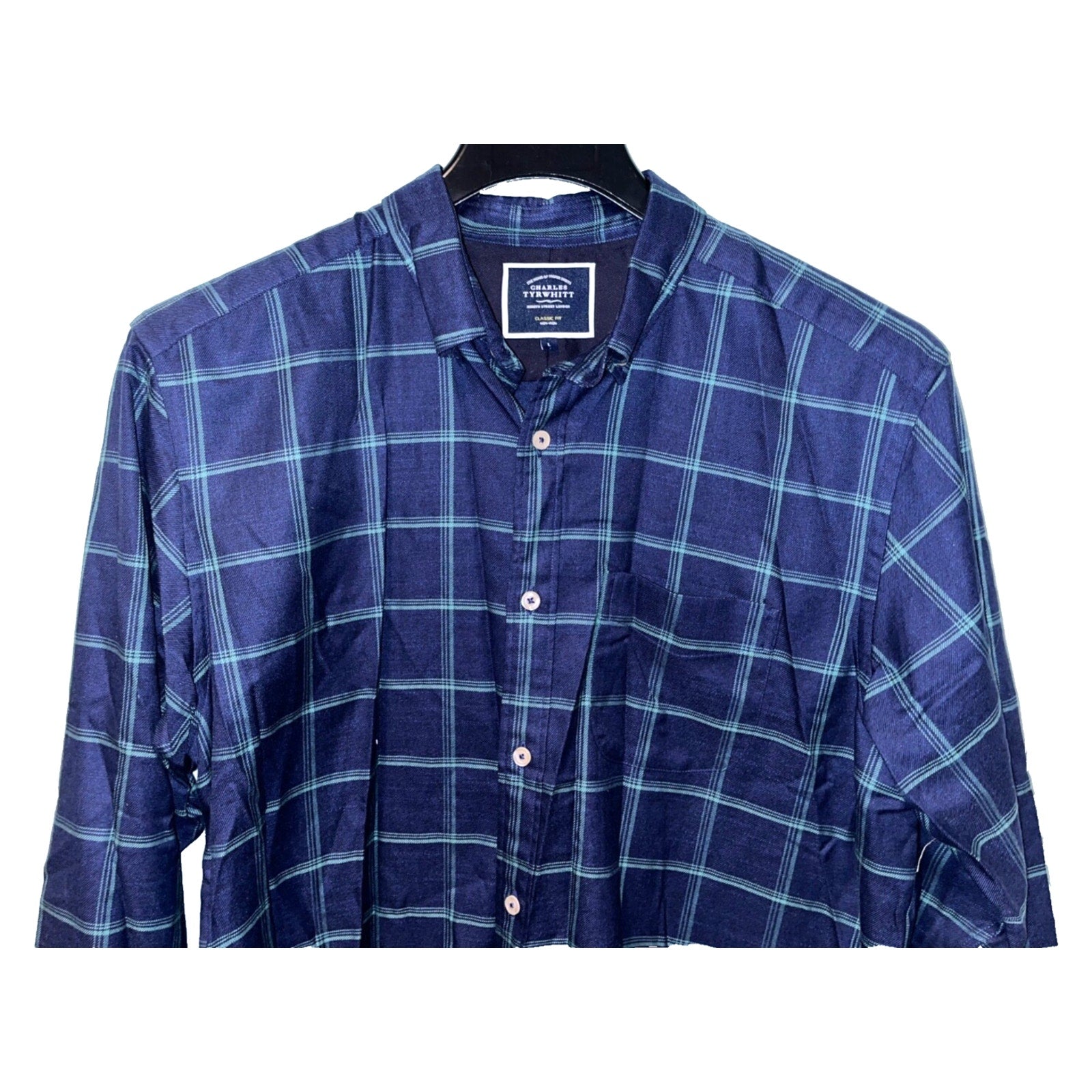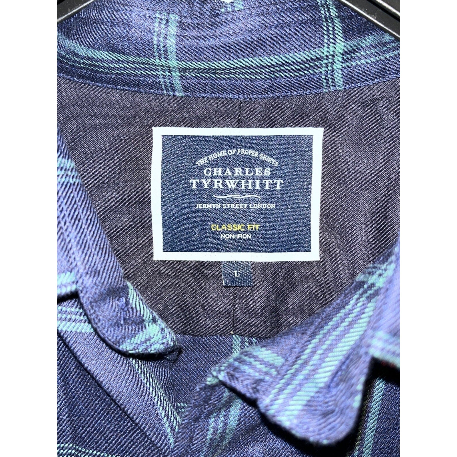 Charles Tyrwhitt Dress Shirt Non Iron Classic Fit Check Heavy Cotton Denim Sz. L