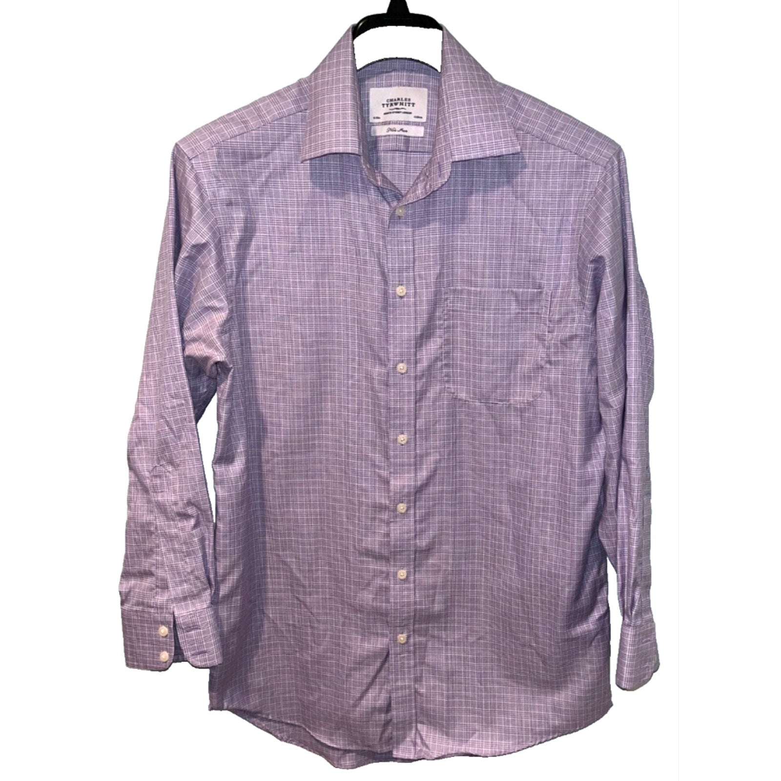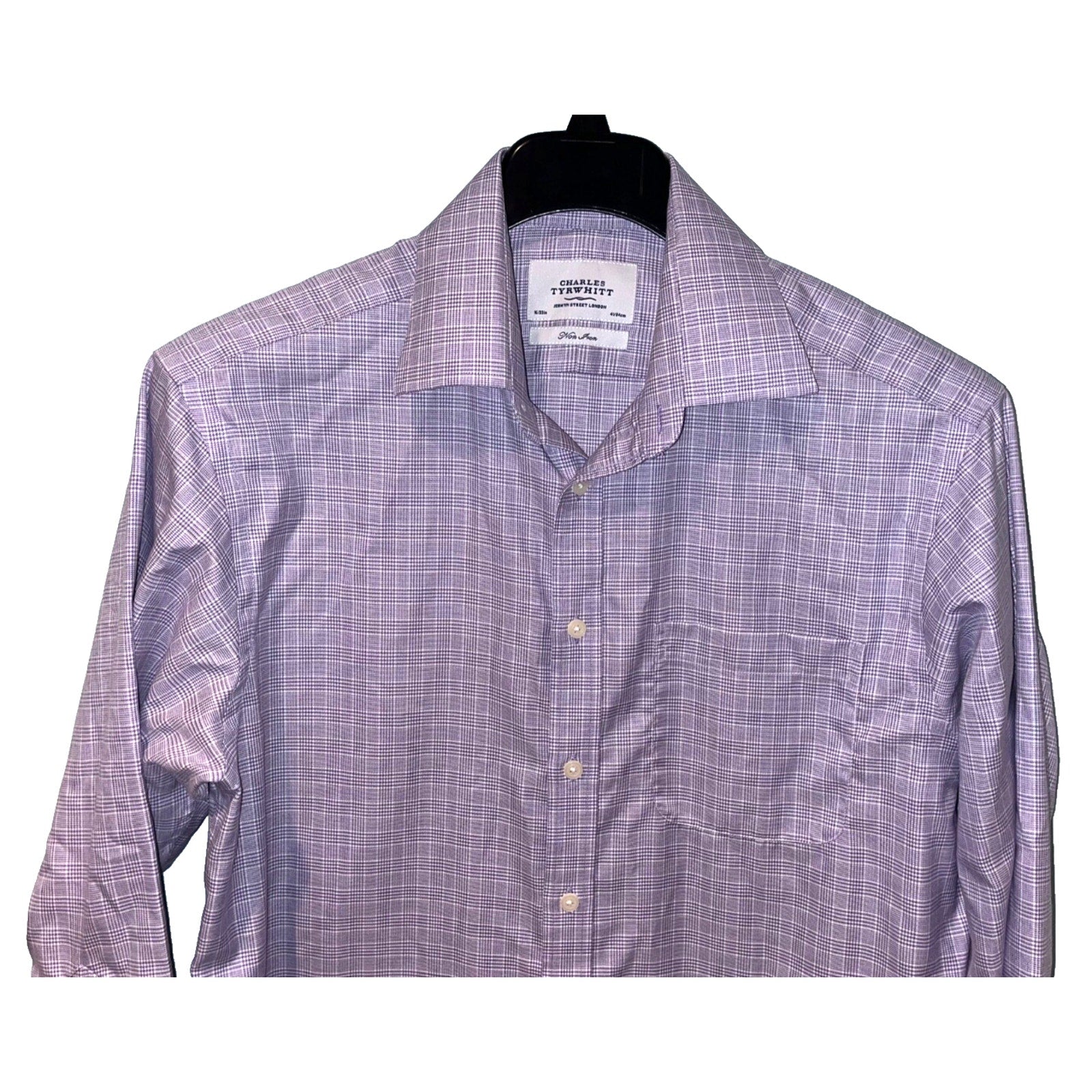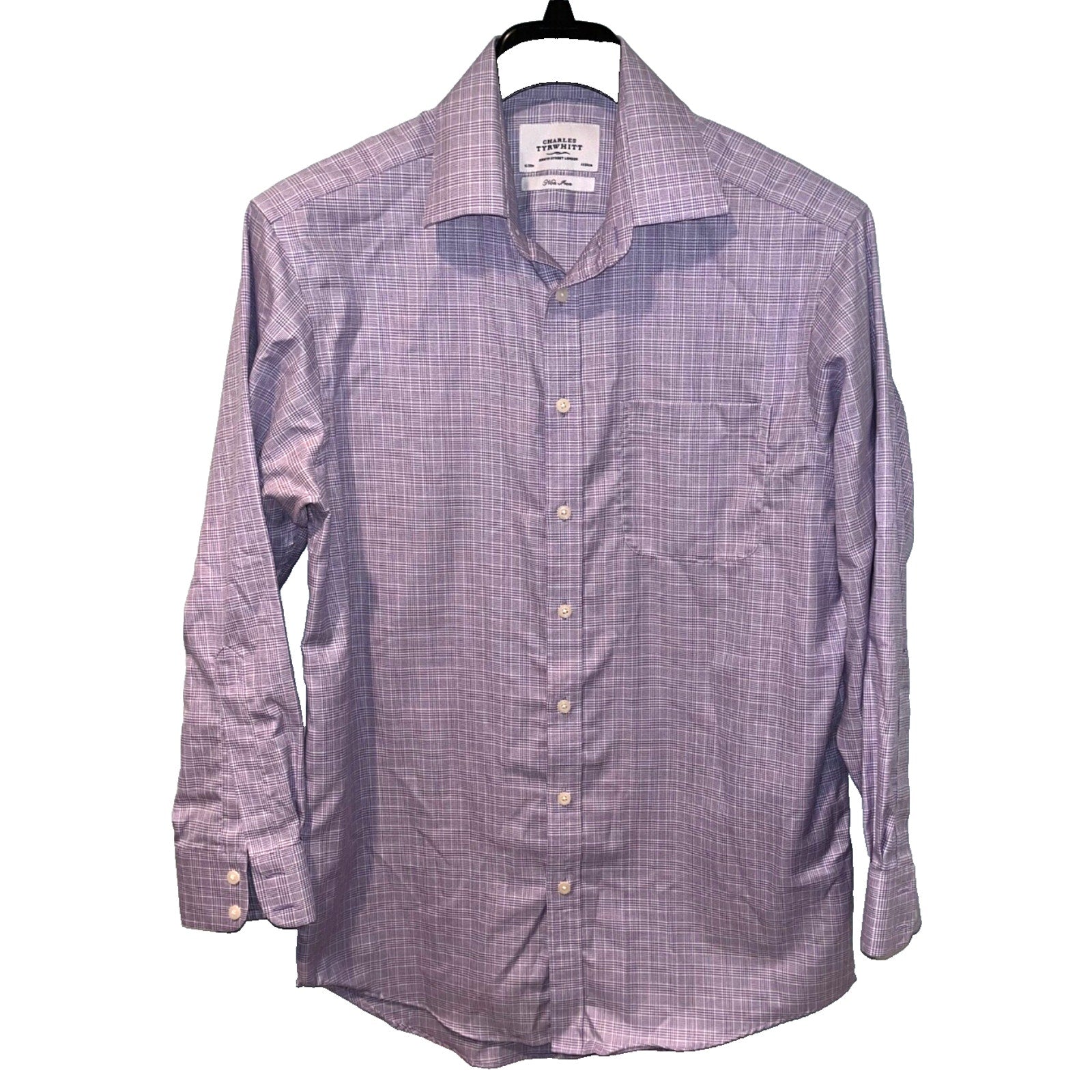 Charles Tyrwhitt Dress Shirt Non Iron Extra Slim Fit Plaid Purple Men's 16/33
