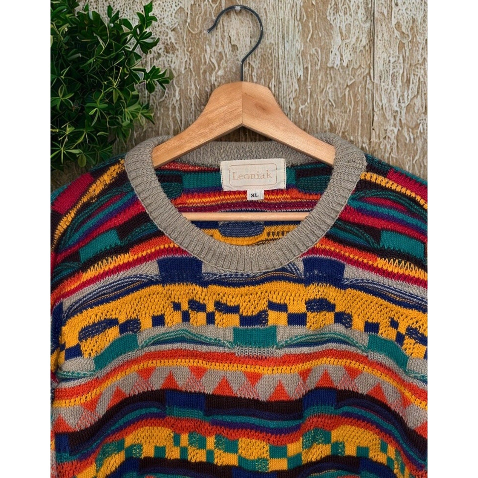 Leoniak Coogi Style 3D Knit Sweater XL Chunky Crew Vintage Biggie Smalls
