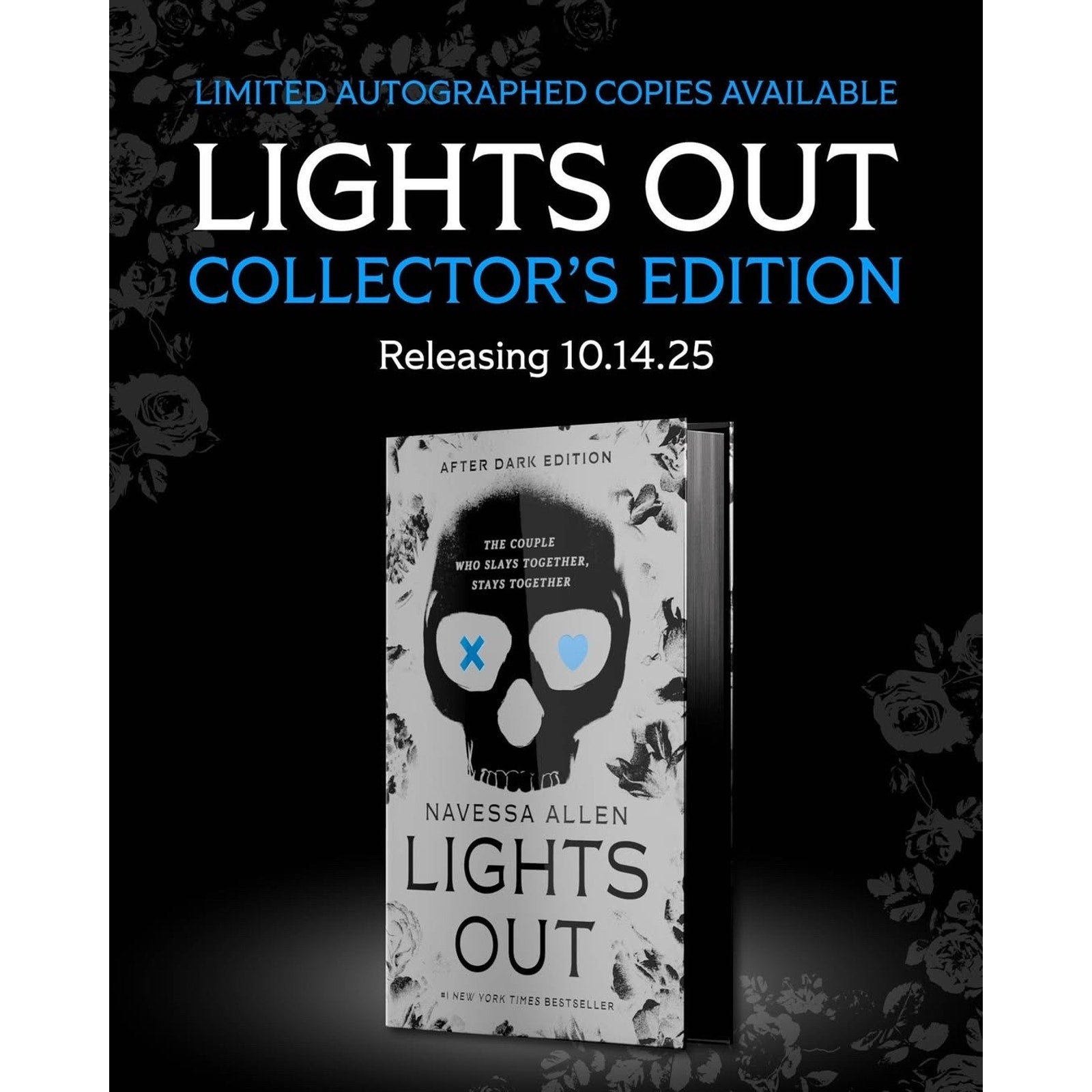 Experience the INSTANT #1 New York Times bestseller in its most coveted format — the Collector’s Edition of Lights Out by Navessa Allen, complete with signed tip-in page, foil-stamped cover, sprayed metallic edges, illustrated endpapers, an exclusive author letter, and a bonus chapter not available in the standard release.