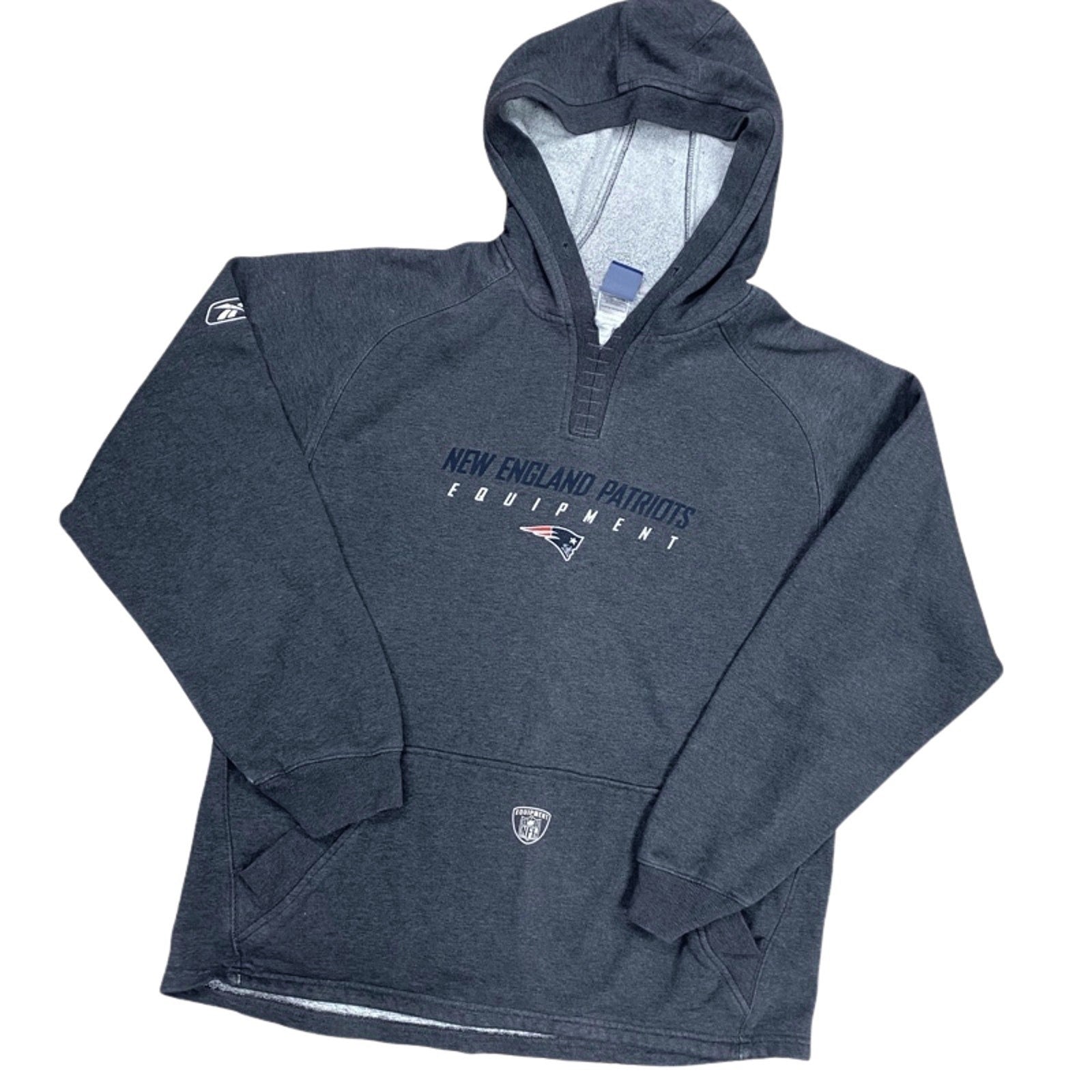 New England Patriots Hoodie M Gray Bill Belichick Y2K Pullover Equipment Reebok