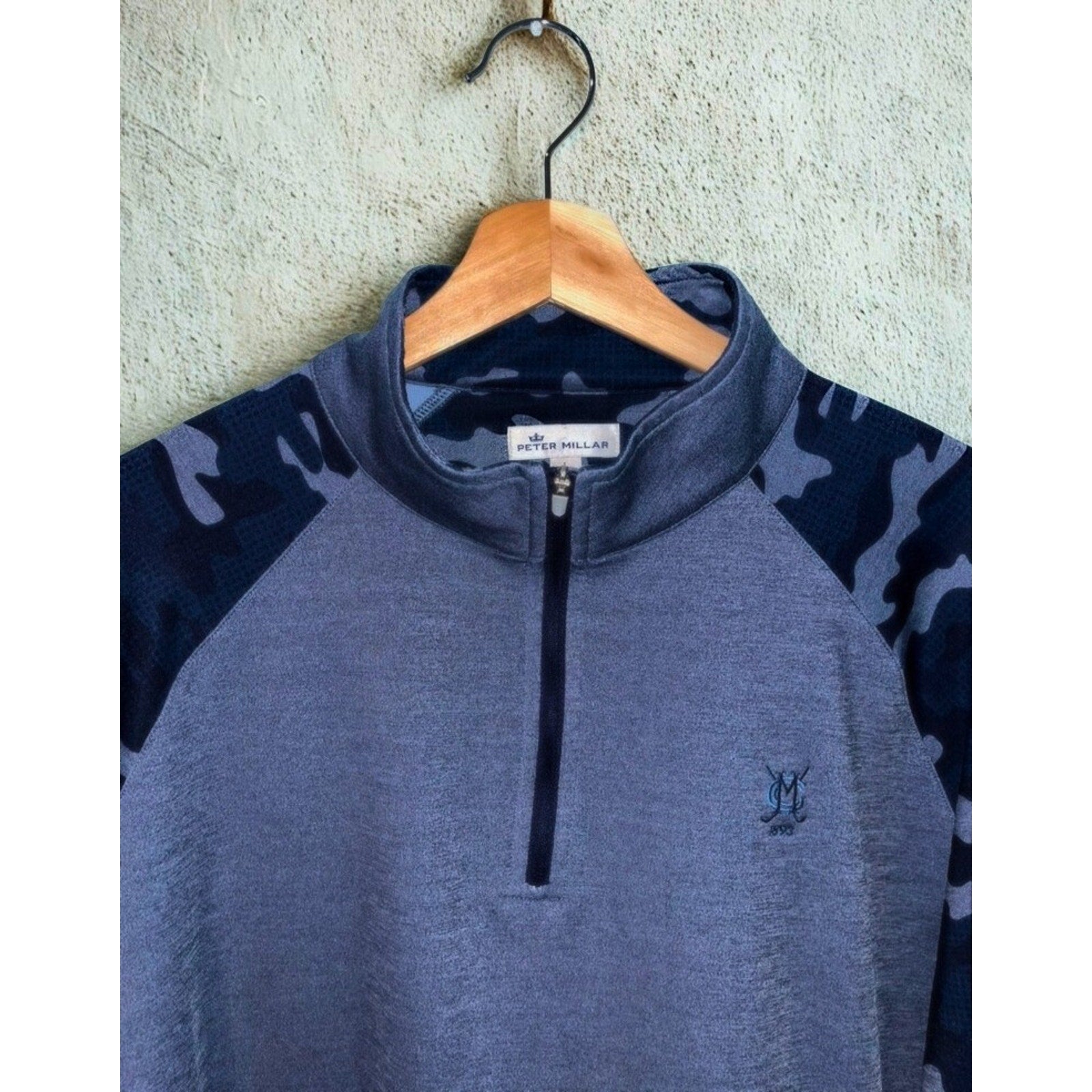 Peter Millar Perth Performance Quarter Zip Montclair Golf Club Blue Camo Size L