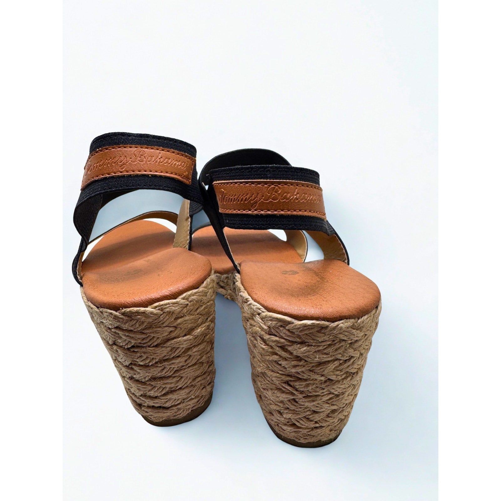 Tommy Bahama Sakura Elastic Wedge Sandals Black Sz 10