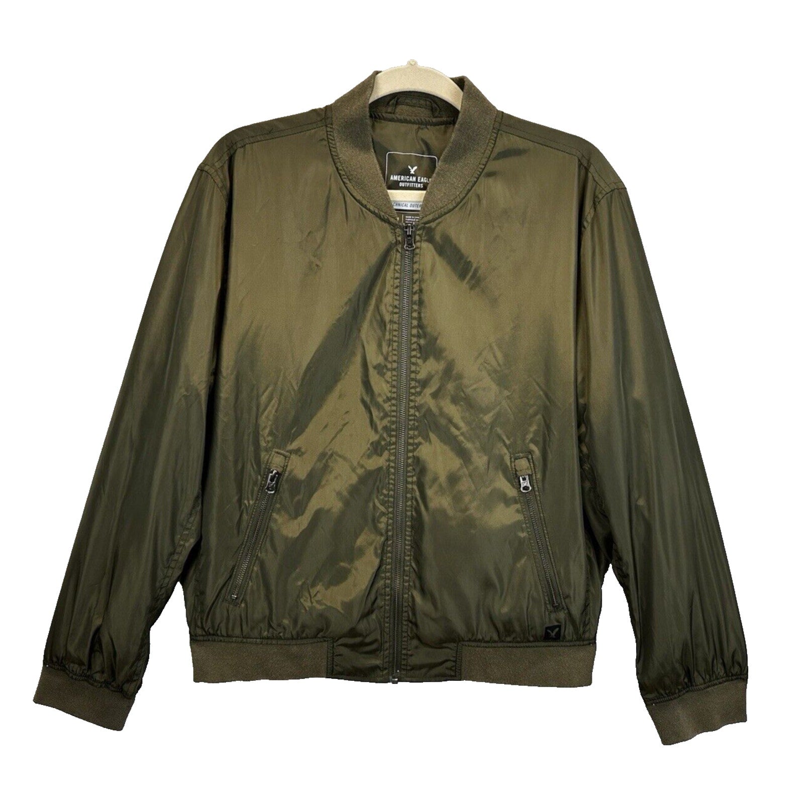 American Eagle Outfitters Men’s LT Olive Green Bomber Jacket – Technical Outerwear