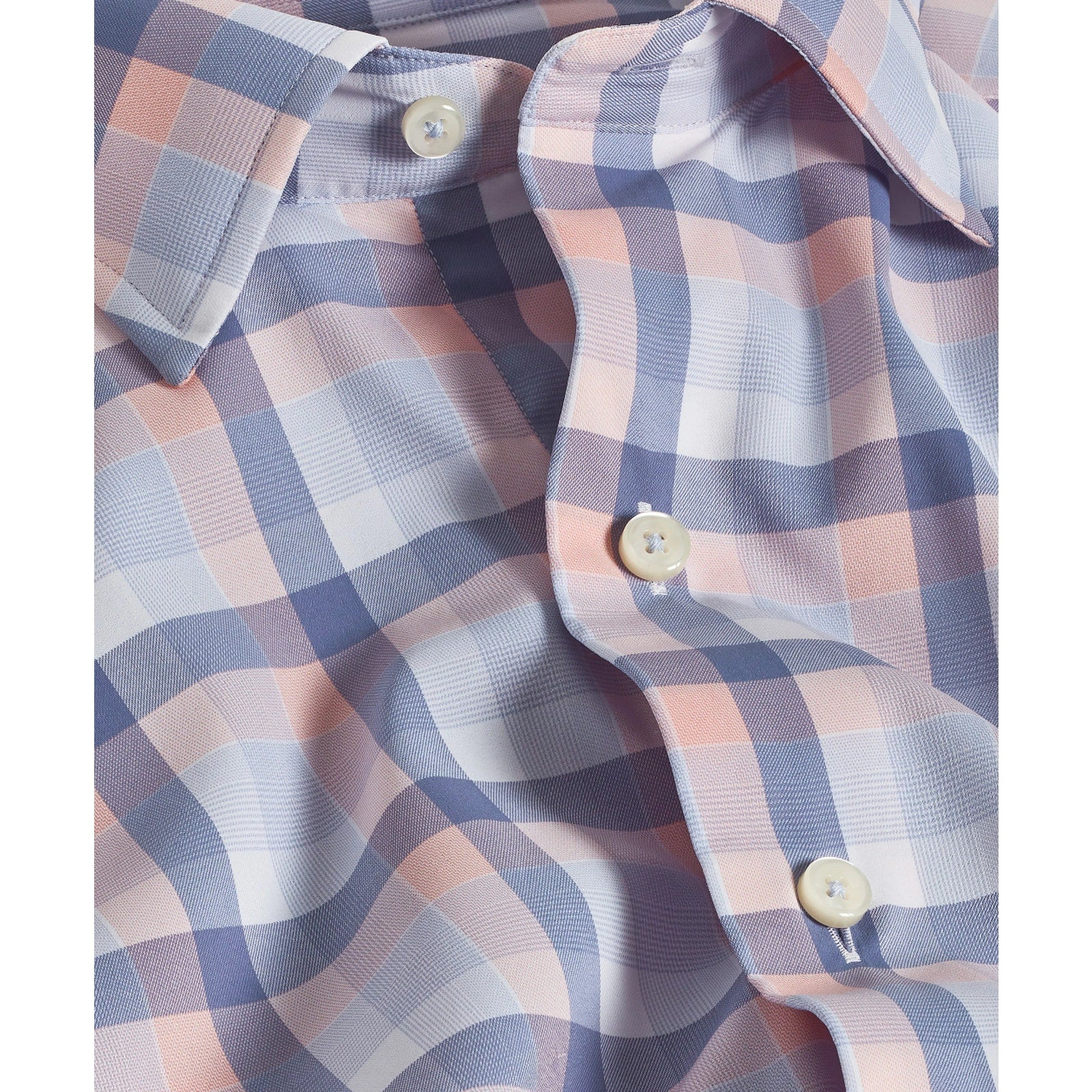 Elevate your wardrobe with the David Donahue Blue Melon Plaid Performance Sport Shirt, designed for the discerning individual who values both style and comfort. Crafted from a blend of nylon and spandex, this shirt offers a lightweight feel that's perfect for all seasons. With its classic spread collar and long sleeves, it's a versatile piece that can transition effortlessly from business to casual settings, or even to a cocktail party. The shirt features a timeless plaid pattern in a tasteful multicolor palette, complemented by the brand's subtle logo accent. Its regular fit ensures a flattering silhouette for a range of body types, while the button-up closure adds a traditional touch. Whether you're attending a formal event, traveling, or simply going about your day-to-day, this shirt is sure to become a go-to in your collection.