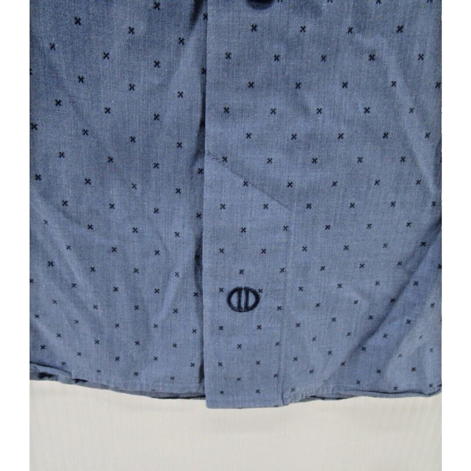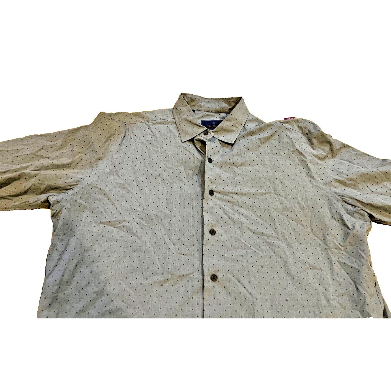 This David Donahue shirt features a unique geometric pattern in shades of blue, making it a perfect choice for any occasion. With long sleeves and a collared neckline, this shirt has a spread collar style and a button closure. It is made of lightweight cotton material, making it suitable for all seasons. The shirt is available in a size XL and has a regular fit. The design is modern and stylish, with accents of a logo. It is a unisex shirt, suitable for both men and women. This shirt is perfect for travel, weddings, parties, casual wear, workwear, and business settings.