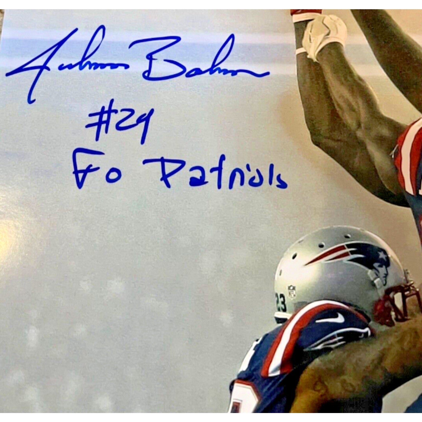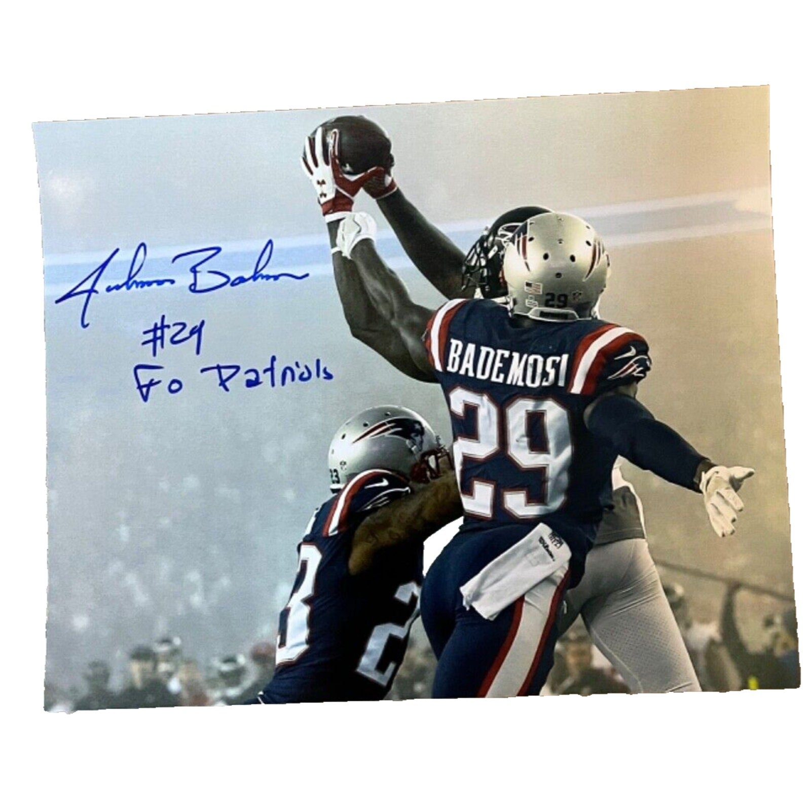 Johnson Bademosi Inscribed “Go Patriots” Autographed New England Patriots 8x10