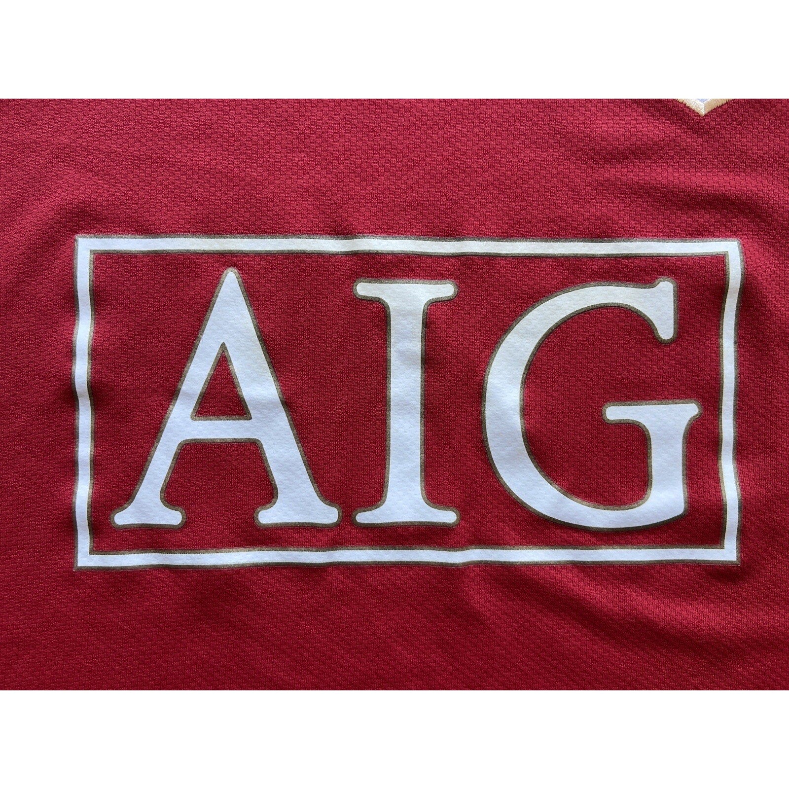 This authentic Nike Manchester United home kit is one of the most recognizable in club history — the first AIG-sponsored jersey and worn during a title-winning campaign. A must-have for any Red Devils supporter or vintage football collector.