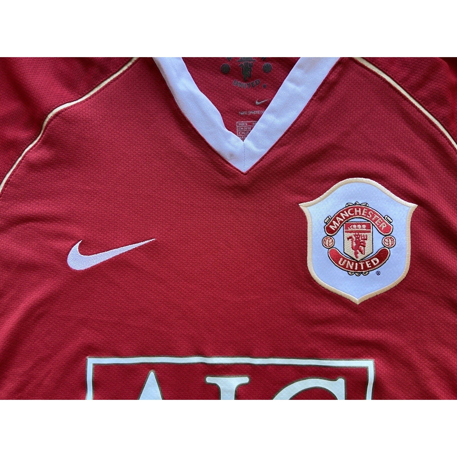 A true piece of football history — the 2006-2007 Manchester United Home Jersey by Nike. Worn during the first season of the AIG sponsorship, this classic red shirt recalls an era of Premier League dominance under Sir Alex Ferguson, featuring stars like Cristiano Ronaldo, Wayne Rooney, Paul Scholes, and Ryan Giggs.