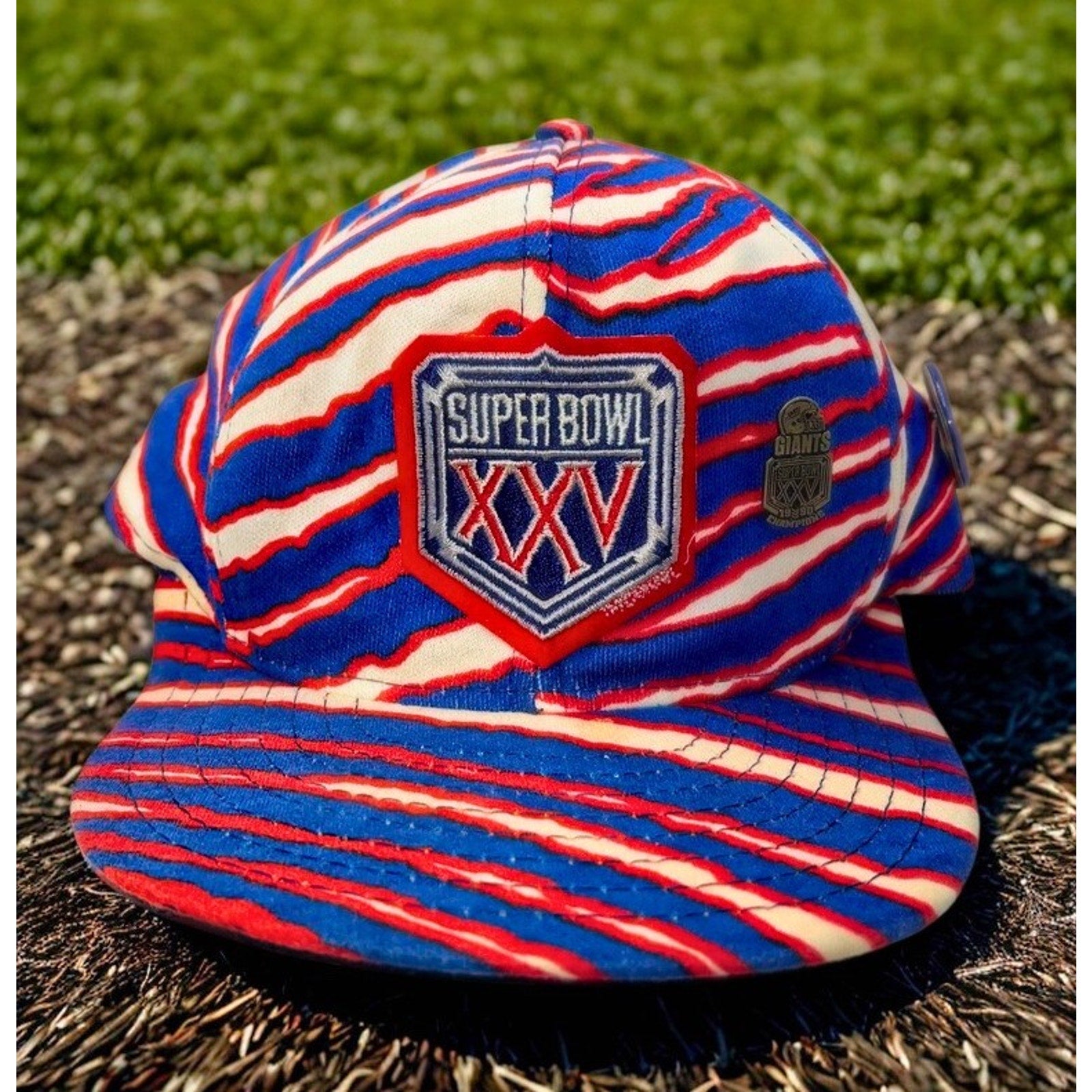Super Bowl XXV is remembered as one of the closest and most dramatic Super Bowls in NFL history, decided in the final seconds. This hat captures that era perfectly with bold Zubaz multicolor striping, a style synonymous with early-1990s NFL culture.
