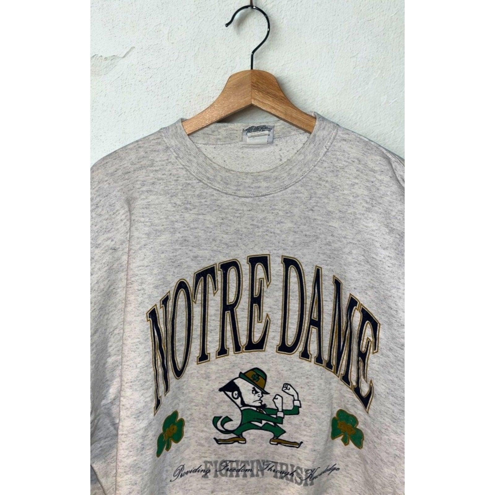 Finding an original Made in USA Notre Dame crewneck from this era is becoming increasingly rare, especially in wearable condition.