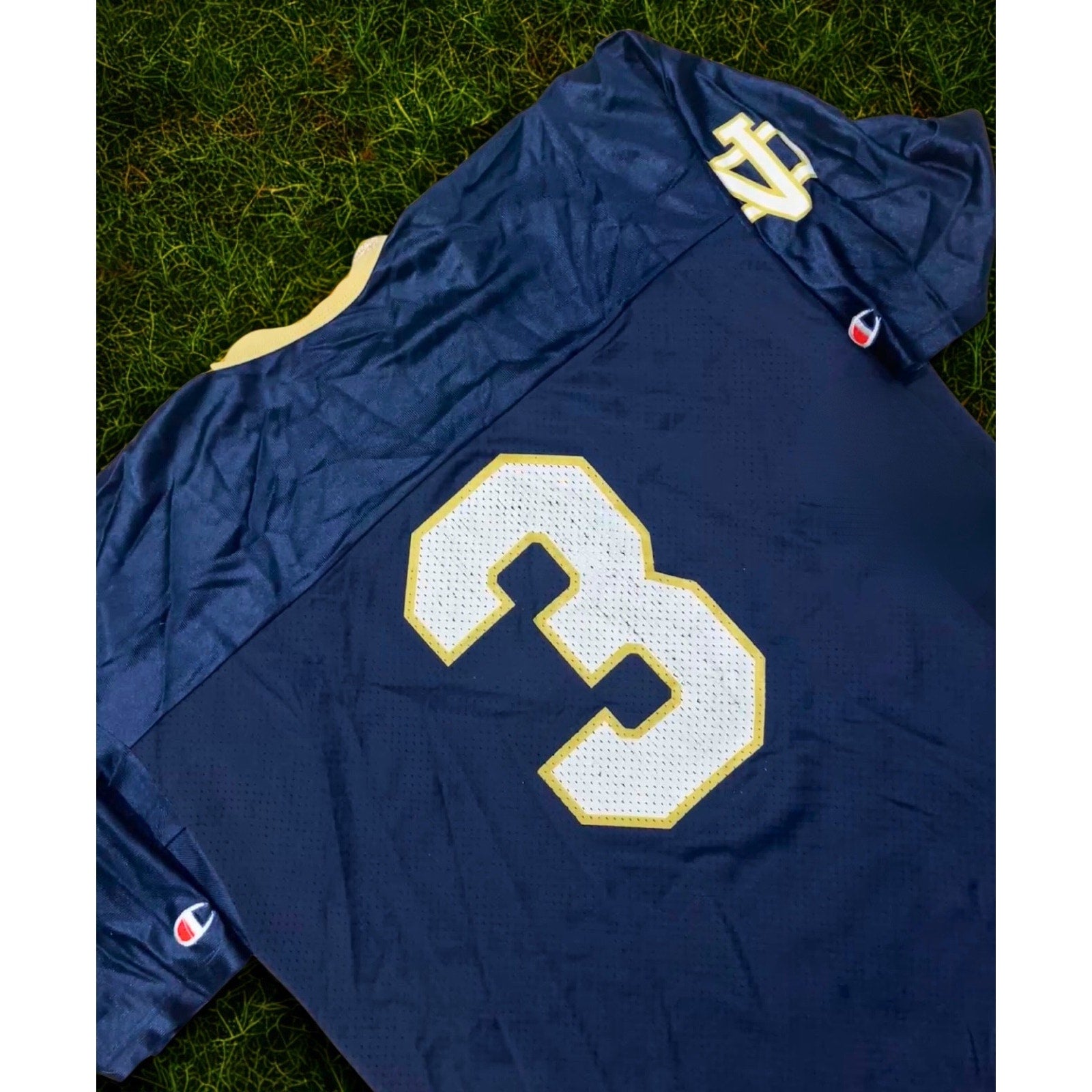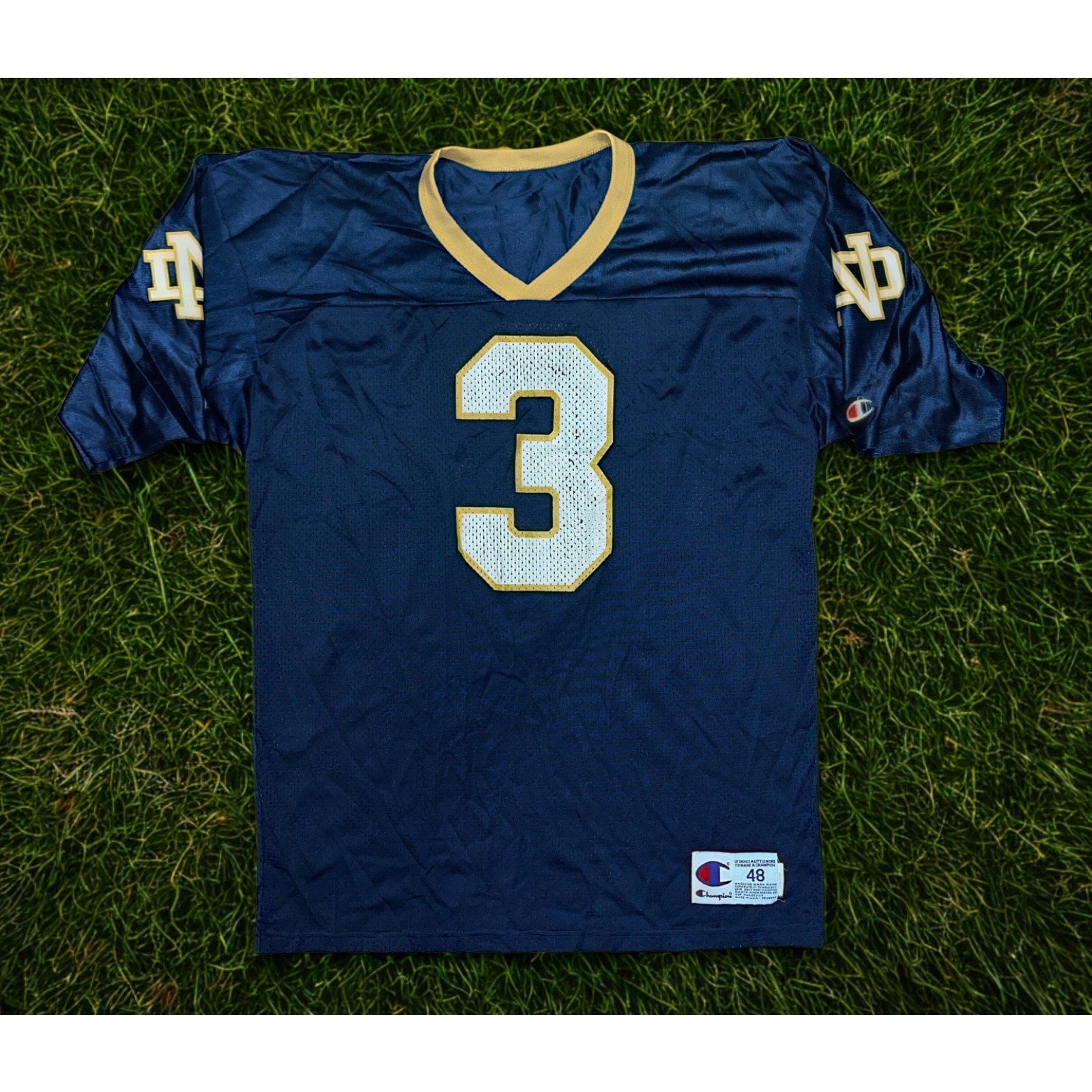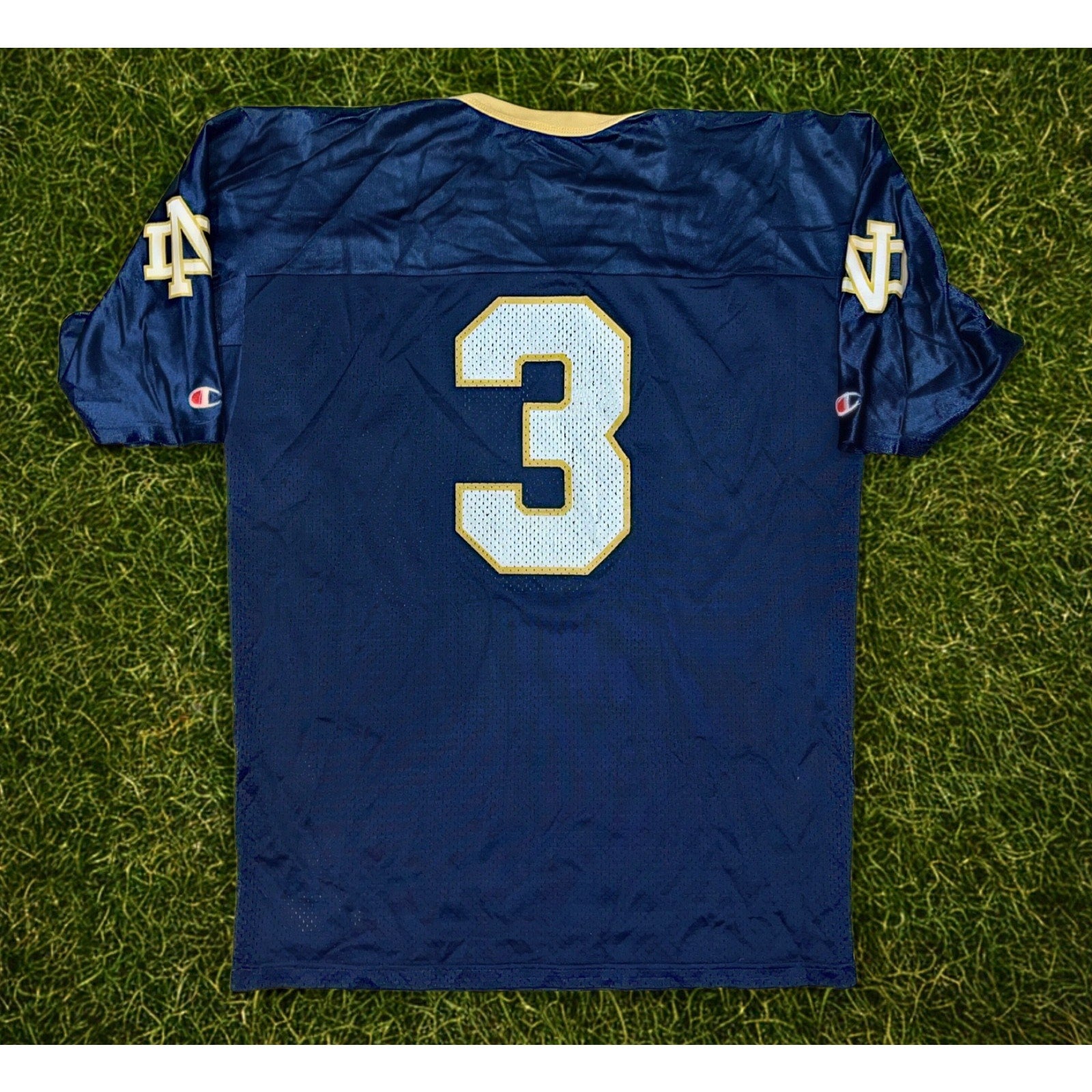 Produced by Champion in the USA, this classic mesh jersey features bold #3 numerals and traditional Notre Dame navy and gold styling — a timeless piece that hits hard for collectors, Irish fans, and vintage sportswear heads alike.