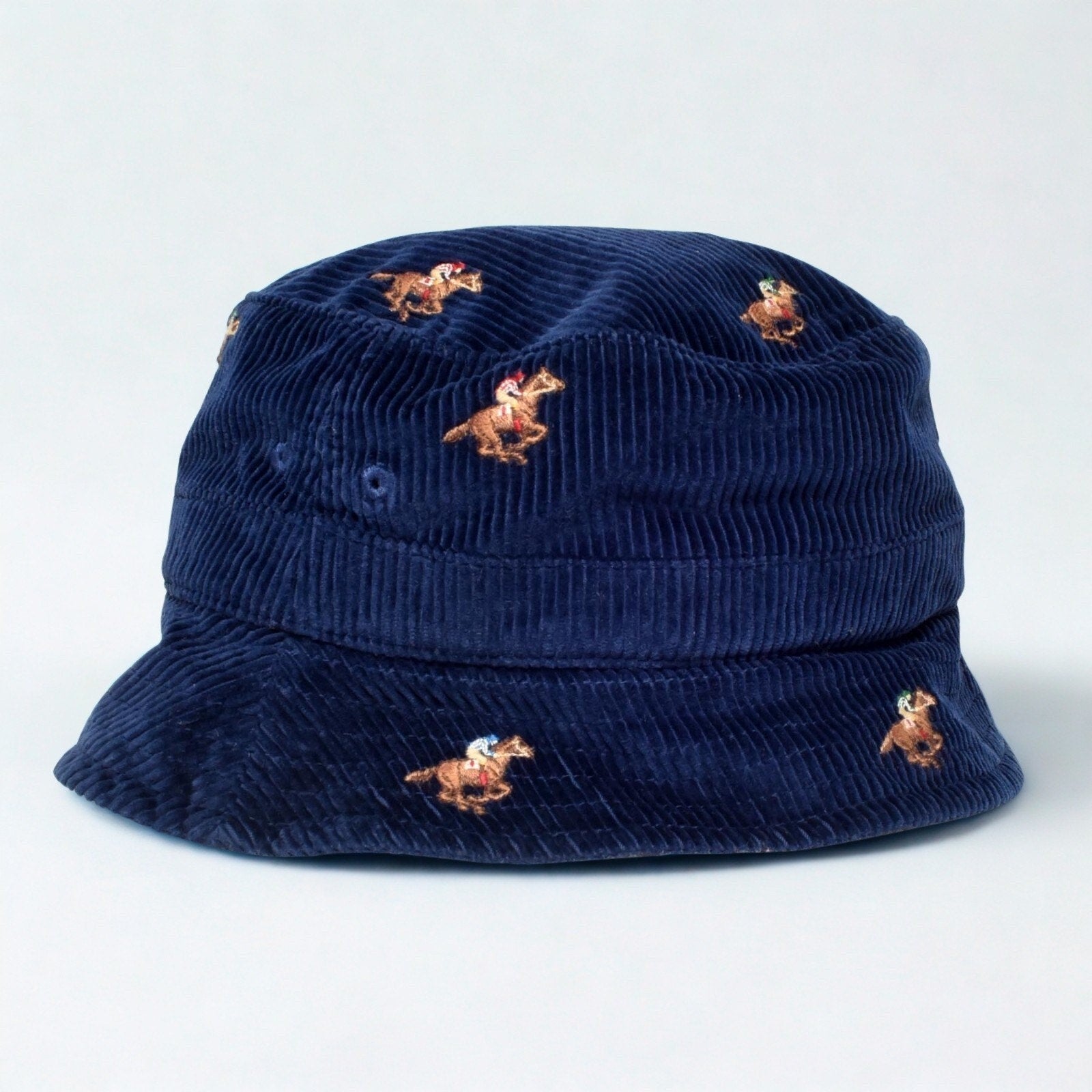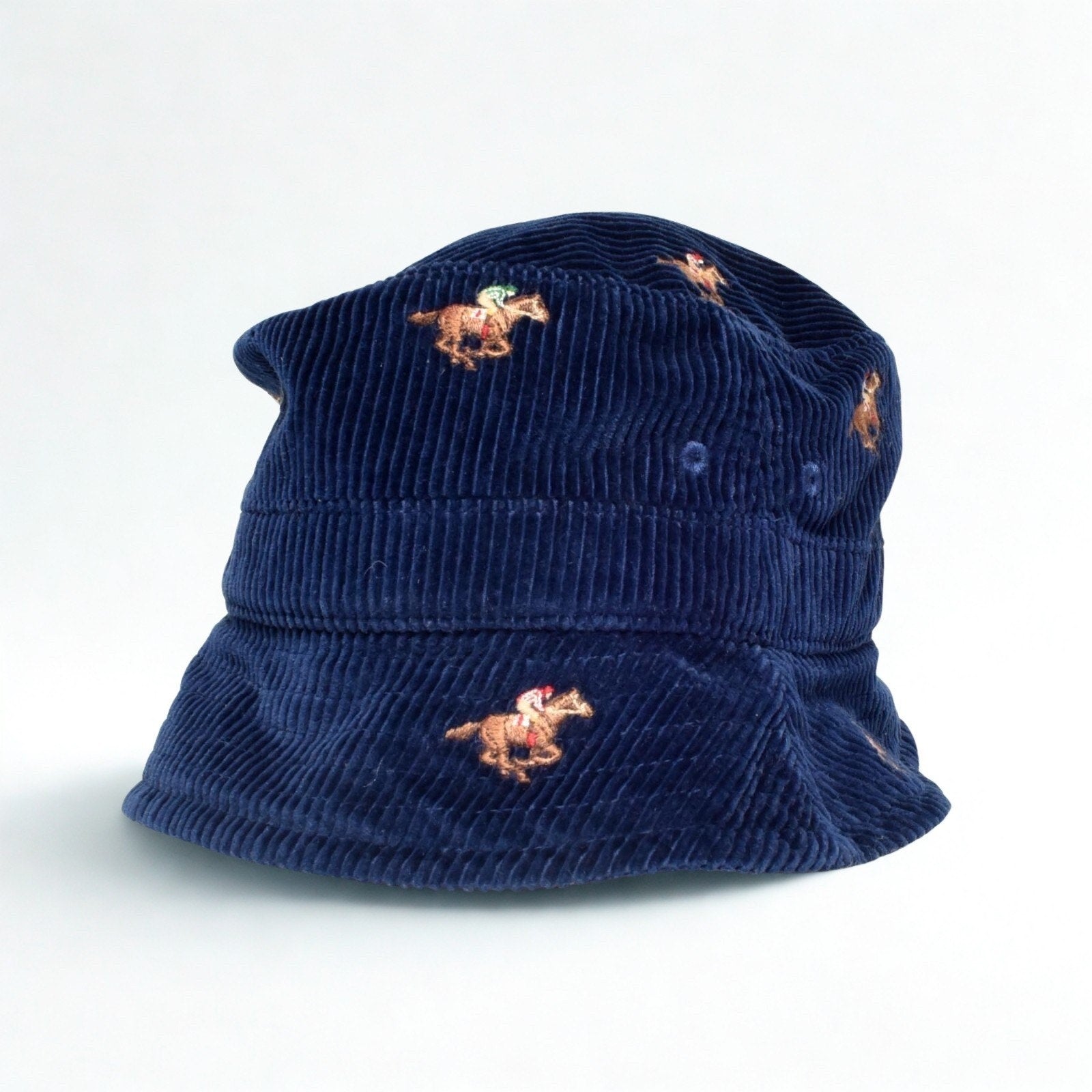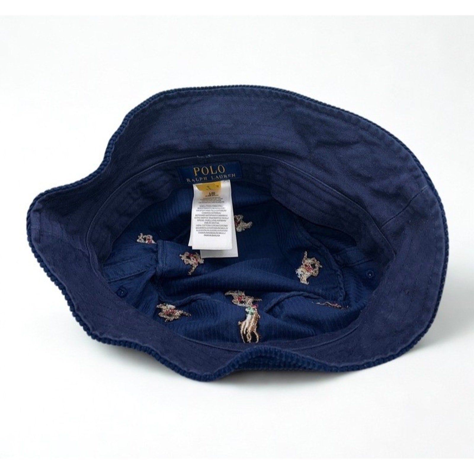 Polo Ralph Lauren Equestrian Corduroy Bucket Hat L/XL Navy Pony All Over NWOT