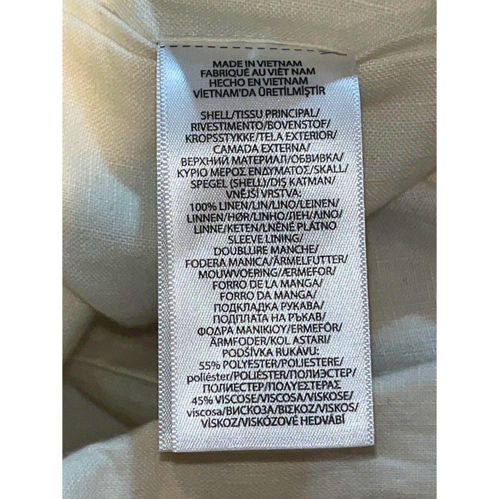 Sleeve Lining: 55% Polyester / 45% Viscose