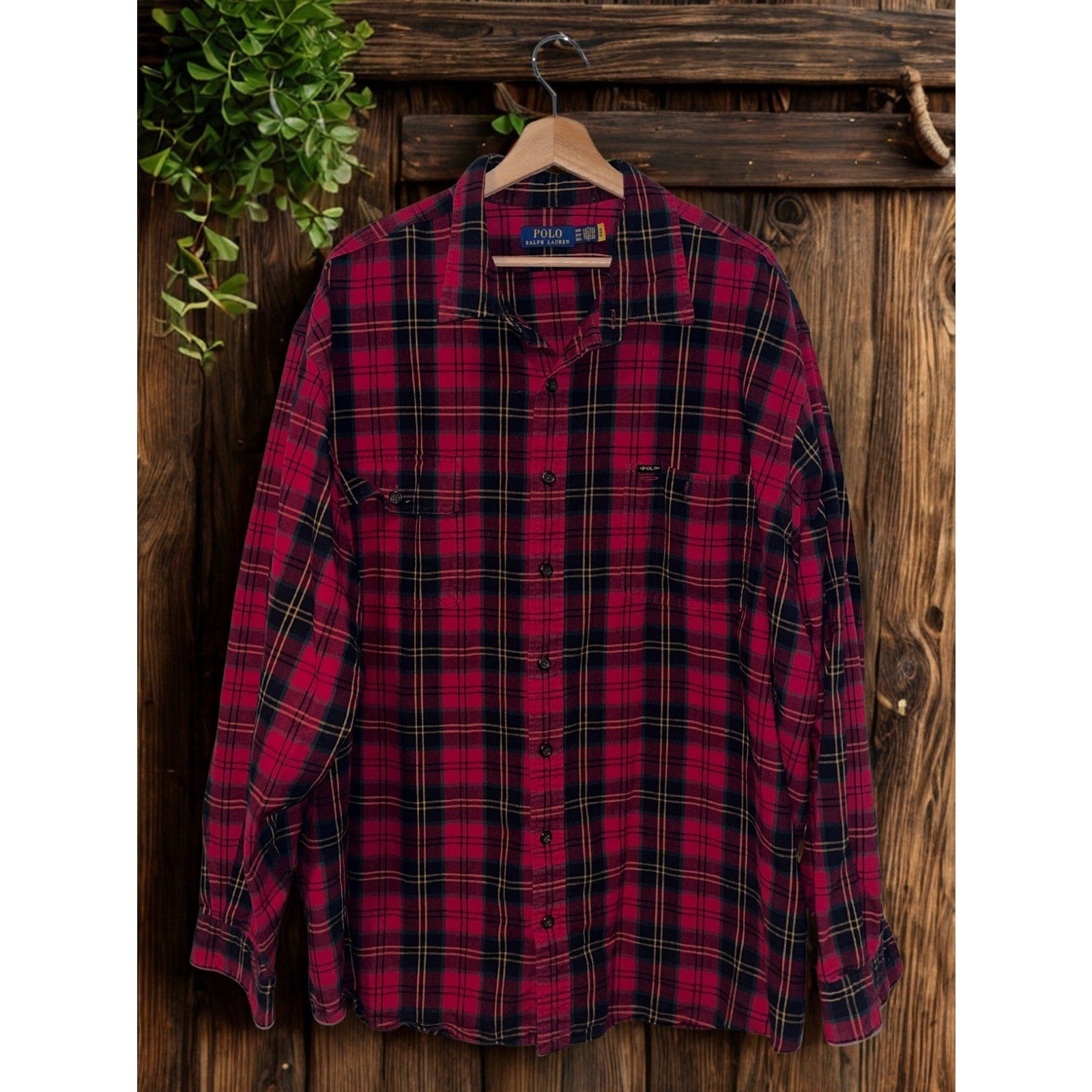Polo Ralph Lauren Tartan Flannel Oxford Sport Work Shirt Red Black Mens 3XB EUC