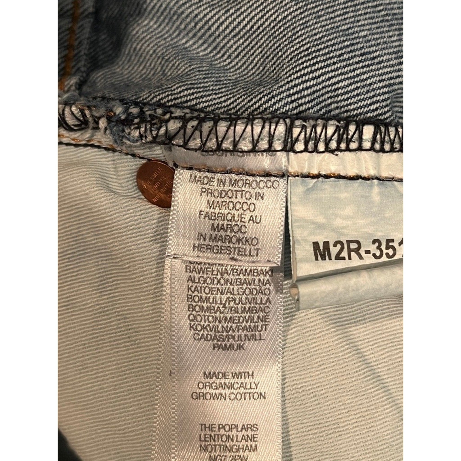 Clean denim with light natural wear consistent with normal use. No major flaws observed.