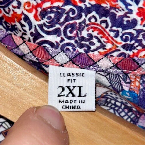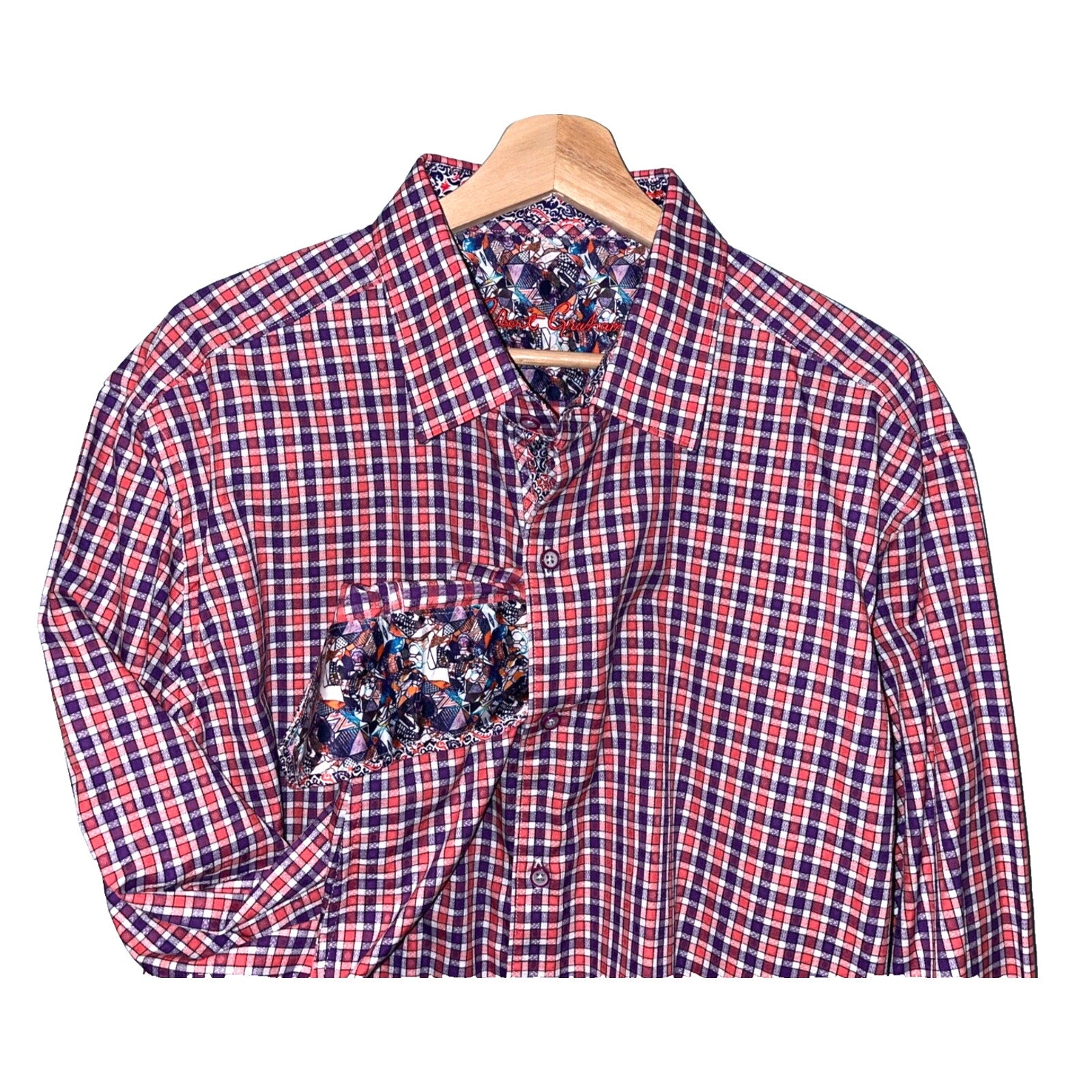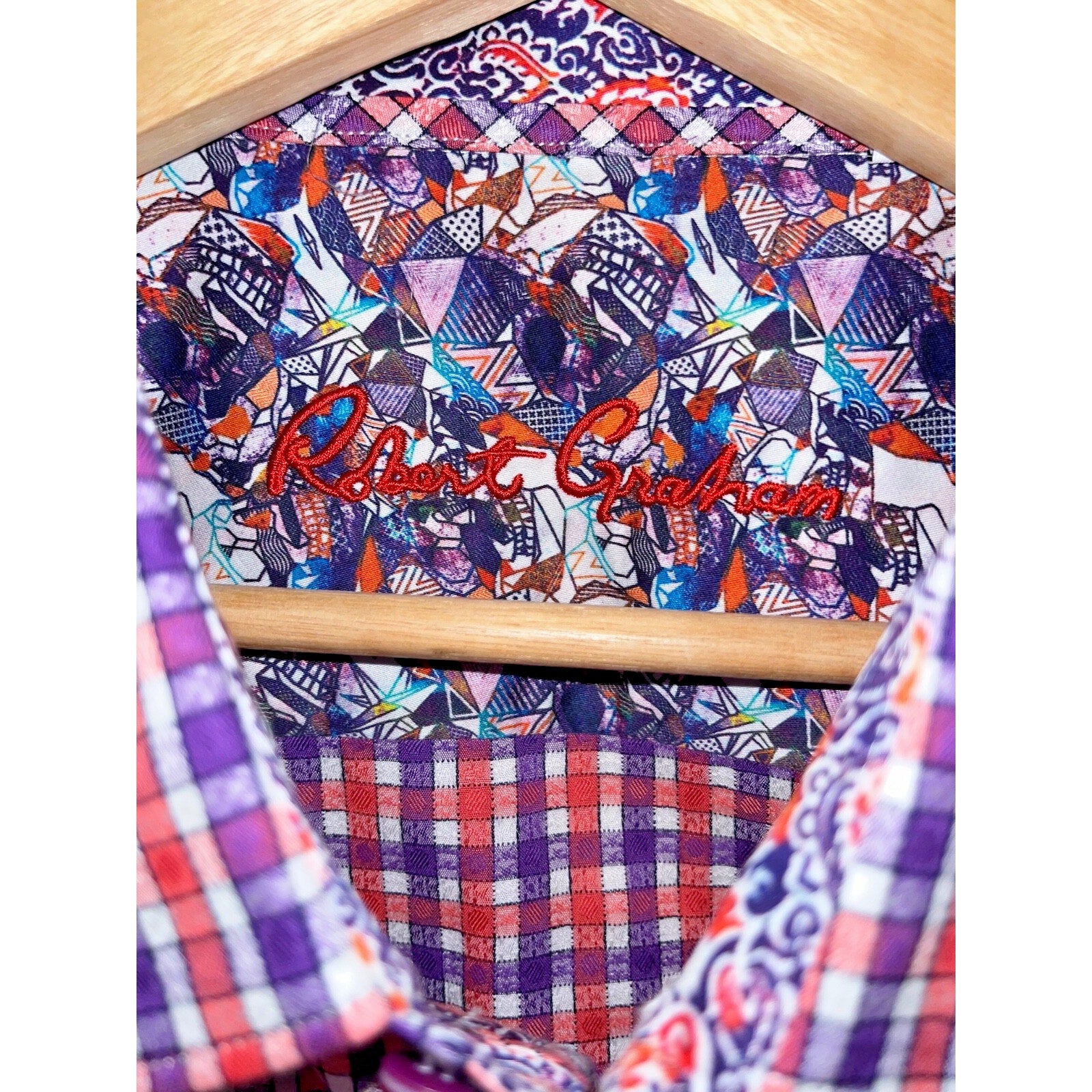 Robert Graham Button Front Shirt Textured Geometric Flip Cuff Men's Sz. 2XL EUC