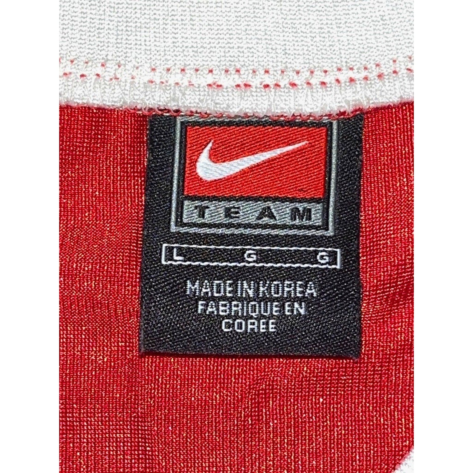 This jersey is an authentic Nike Team issue piece — not a replica or modern fashion reprint. It features proper tackle-twill numbering, correct mesh construction, period-accurate Nike Team tagging, and is made in Korea, consistent with early-2000s on-field and team-issued collegiate uniforms. Jerseys of this quality were produced to meet on-field specifications, not mass retail standards.