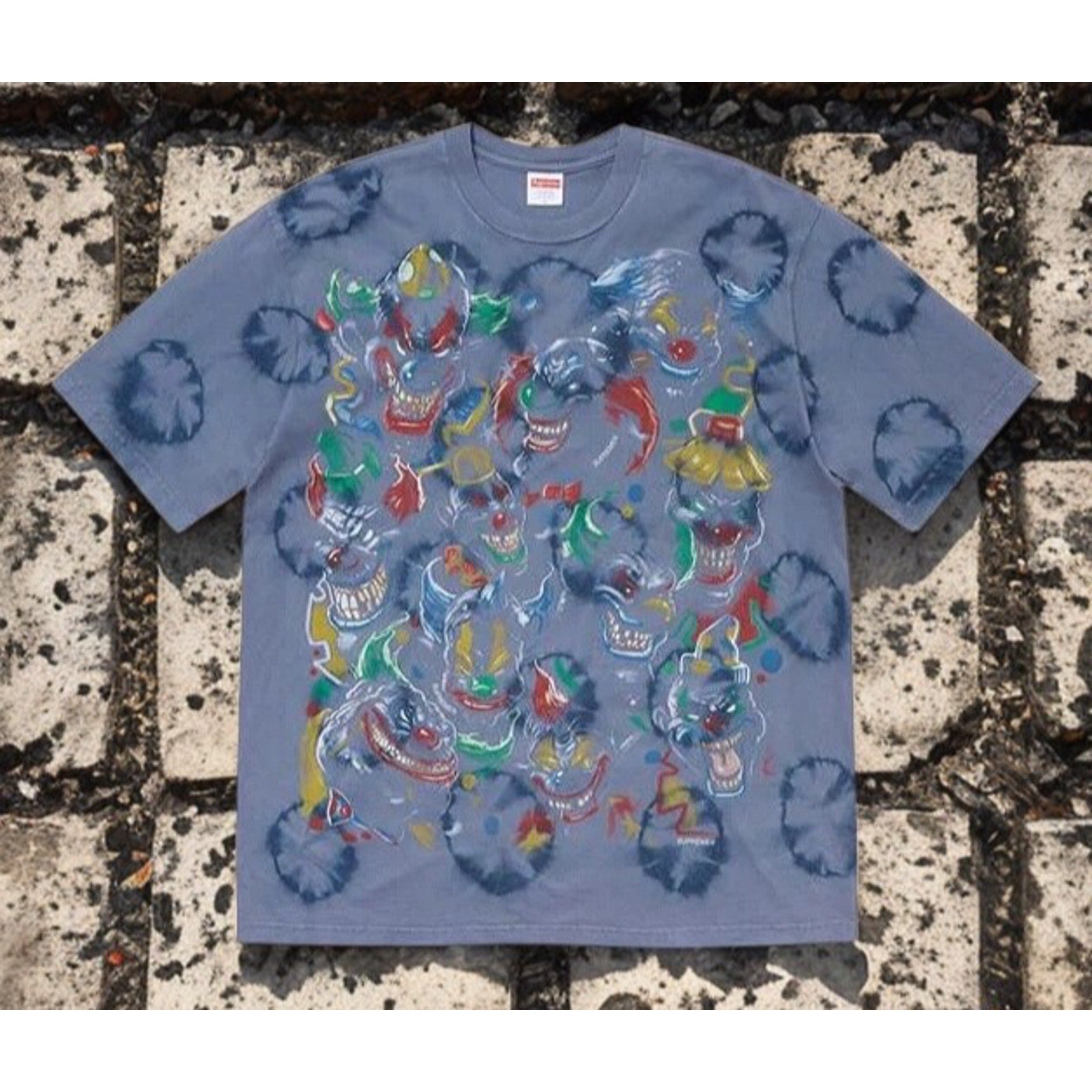 The bold clown artwork spans the entire front, blending vivid pops of color with eerie, surreal expressions that capture Supreme’s edge-driven creative direction during this era. The bleached navy base adds depth and character, giving the shirt a naturally worn-in, vintage aesthetic straight out of the box.